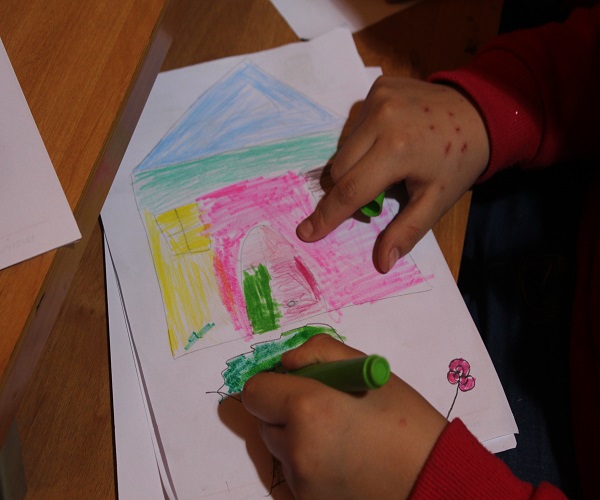 أما في الورشة الثانية “الرسم الحر”، انطلق الطلاب في رسم العديد من الموضوعات البريئة والجميلة، المستنبطة من ما يدور حولهم.