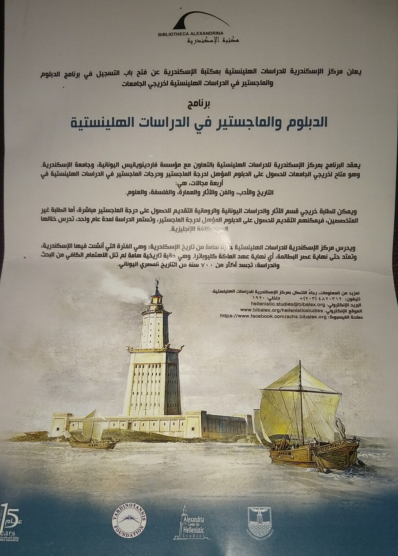 وللمزيد من المعلومات عن البرنامج الإتصال بمركز الإسكندرية للدراسات الهلينستية