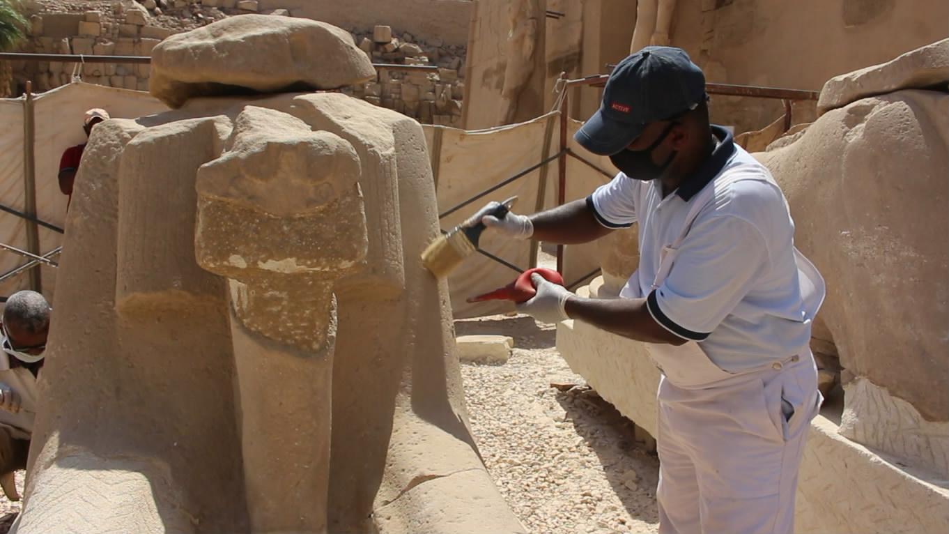 يوضح عبدالناصر عبدالعظيم، المشرف على ترميم آثار مصر العليا، أنه تم ترميم 9 كباش بشكل نهائي، ويخضع نحو 7 كباش الآن للترميم، ويتبقى 13 كبشا لم يتم ترميمهم، وكل ذلك بأيد مصرية خالصة من إدارة ترميم الكرنك.