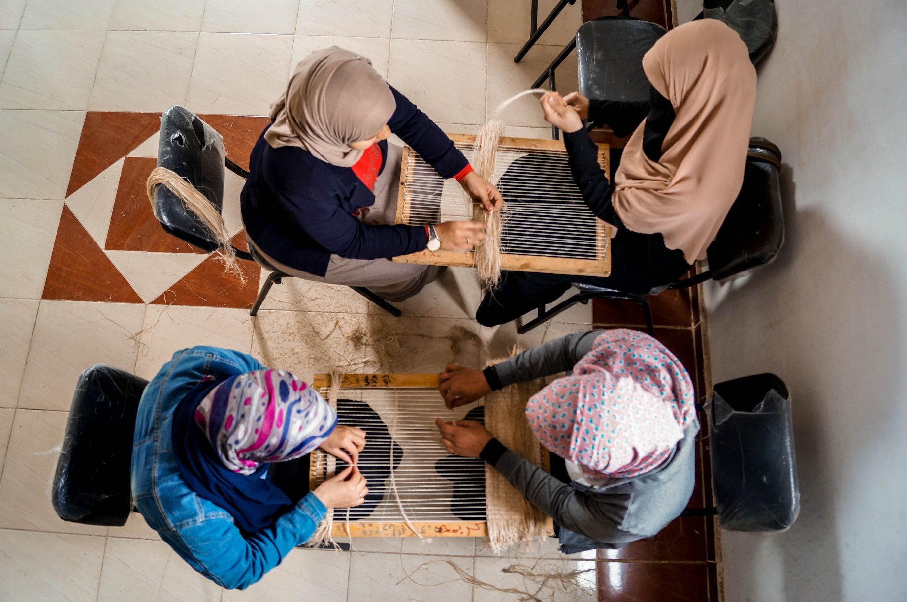 جهاد، أحد أفراد الفريق تلفت إلى أن دورها في صناعة الشنطة هو نسج خيوط الألياف معا بالنول لإعداد الحصيرة. وبعد فرزها واختيار الصالح منها وغسلها وتنظيفها وتسريحها قبل الاستخدام. موضحة أنها علمت عن المشروع عن طريق ورشة عمل عن العمل بالألياف. وفي البداية واجهت الكثير من الانتقادات من قبل أسرتها بالمنزل لتلك الفكرة. ولكنهم تقبلوا الفكرة عند رويتهم للأشغال التي تقوم بها.