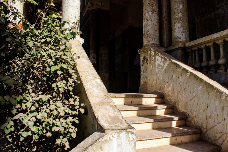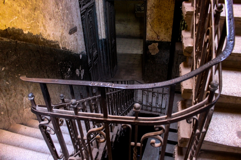 أما السقف يرجعك لعصور لا تراها إلا على شاشة التلفزيون، وبالنظر إلى الغرف يفصلك عن كل هذه الصور، صورة من الإجراءات والمعاملات والمكاتب والدواليب الحكومية التي تخفي باقي ملامح القصر التراثية، وتأخذك أقدامك للداخل وعلى الجانب الأيسر في منتصف القصر باب صغير قديم، بداخله سلم قديم ذو درابزين حديدي، ثم درجات السلم تصل بك إلى الأدوار العليا، الذي يرجعك لاحقا لعصرنا هذا بهيئة الحكومية التقليدية.