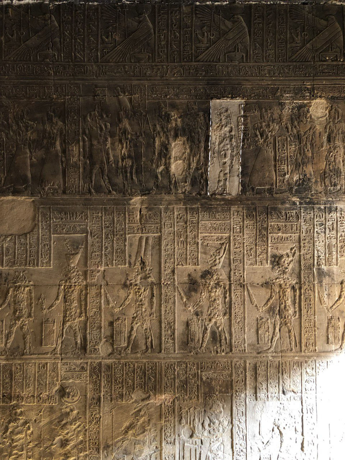 يرجع تاريخ معبد دندرة إلى العصر البطلمي، وهو واحد من أجمل المعابد المصرية القديمة التي حفظت لنا لحسن الحظ بألوانها الزاهية الأصلية حتى الآن، وبريق نقوشها الأنيقة والدقيقة. يحتوي المعبد على مشاهد متفردة مثل تلك التي تحتفظ بها القاعة الرئيسية، التي صورت نوت وهي تبتلع قرص الشمس وتلده مرة أخرى كأنها تضمن كونها ربة السماء. هذا مشهد يعكس طبيعة التفكير الديني لدى المصريين القدماء. مشهد آخر يمثل الشمس حين تشرق من خلال وجه حتحور ربة المعبد، وهو تمثل عبقري وفريد من نوعه.