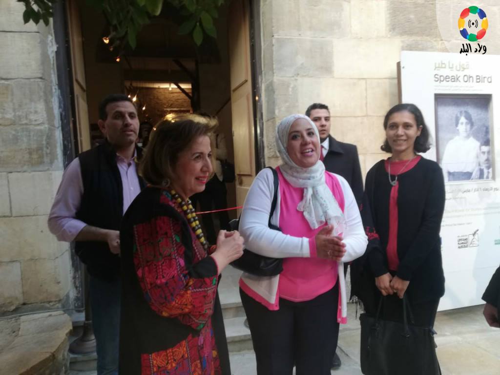 دكتورة فيحاء عبد الهادي أثناء افتتاح معرض قول يا طير- تصوير: أميرة النشوقاتي