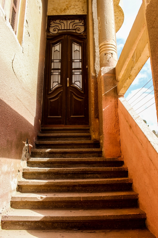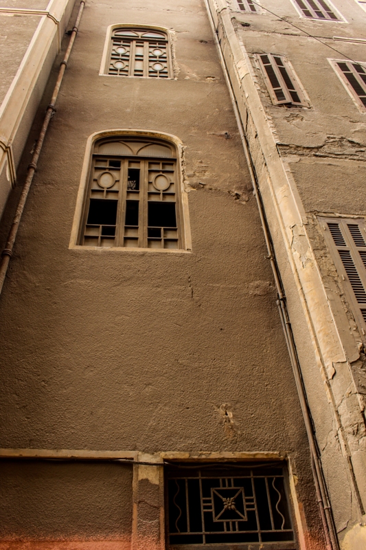 ويستكمل حديثه عن محتويات المبنى قائلًا: الأدوار العلوية كلها شبه بعضها في التقسيم، حيث يتكون كل دور من أربع غرف معيشة واسعة وصالة كبيرة ومطبخ وحمامين، منوهًا بأنه وإخوته محمد وأحمد وزوجاتهم وأولادهم يقيمون فيه، وله أربع شُرف على الشارع الرئيسي “بلكونات” للدورين الأول والثاني العلوي، والدور الثالث يطل على الشارع من خلال شبابيك وليس شُرف “بلكونة”، أما السلالم مَبْنِية بالحجارة الكبيرة من الرخام “المزايكو” مُحاطة بسور حديد “دربزين” حتى الدور الثالث العلوي، فوقه سطح خالي غير مُستغل أيضًا.