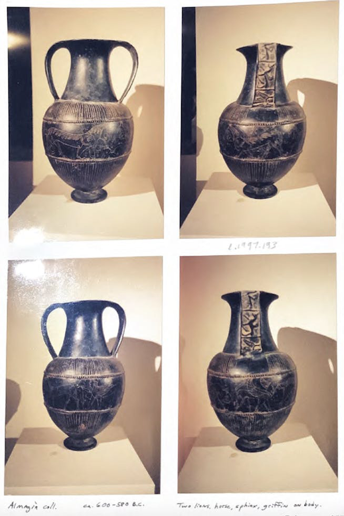 جمع المحققون أدلة تشير إلى أنها تم التنقيب عنها حديثًا من موقع غير مشروع بالقرب من روما. واعترف أحد تجار المقابر بمحاولة بيع القطعة إلى ألماجيا، الذي أراد إرسالها إلى عملائه بأمريكا. وفي عام 1996، صادرت السلطات الأميركية في نيويورك 24 قطعة فنية “إتروسكانية” من معرض فني في مانهاتن، واعتقدت السلطات أنها نُهبت من موقع كروستوميريوم الأثري في روما. وبعد التحقق، اتضح أن ألماجيا وجه مجموعة من لصوص المقابر للحفر سراً في الموقع، ثم هرب القطع الأثرية إلى سويسرا وبيعها لعملاء في نيويورك.