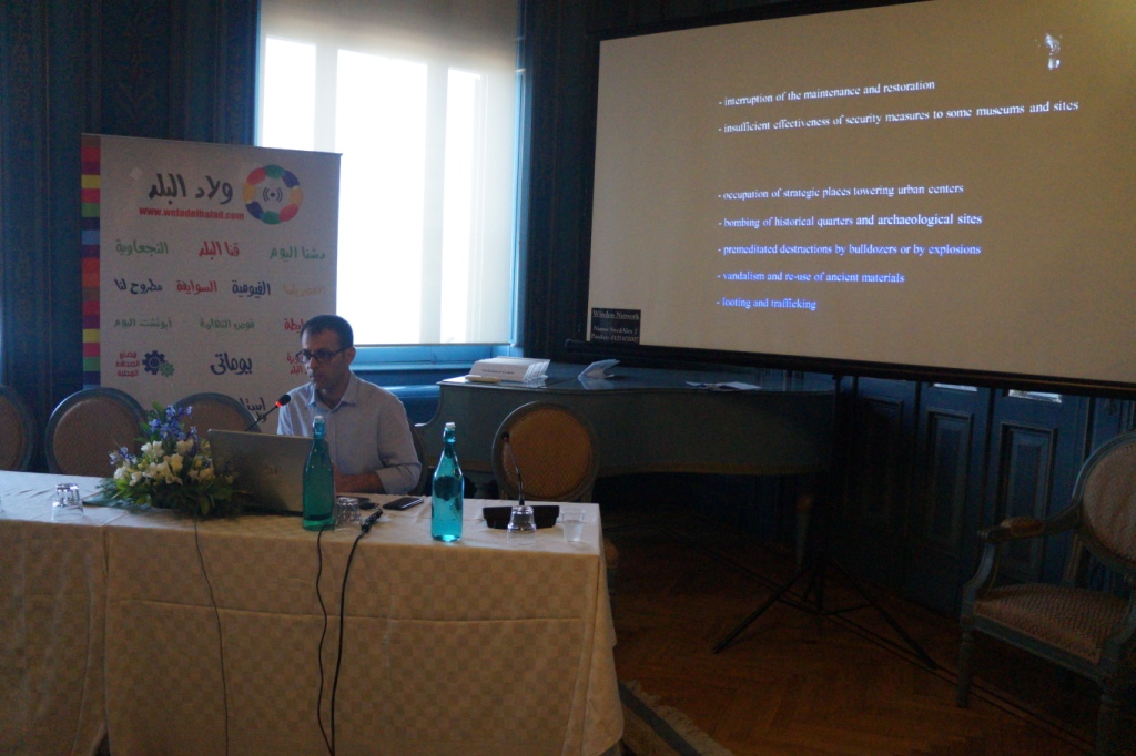 وأوضح أن هناك 42 مشروع يحاولون إعادة الإعمار للتراث السوري، ولكن لا يوجد لهم أي تأثير يذكر إلا بنسبة 10%، كما أن هناك مجموعة من القوانين أصدرتها المؤسسات الدولية، ولكن لا تنفذ أيضًا على أرض الواقع، كما يتم تنظيم عدد من ورش العمل للتوعية وتدريب المواطنين على أهمية التراث، وكيفية المحافظة عليه.