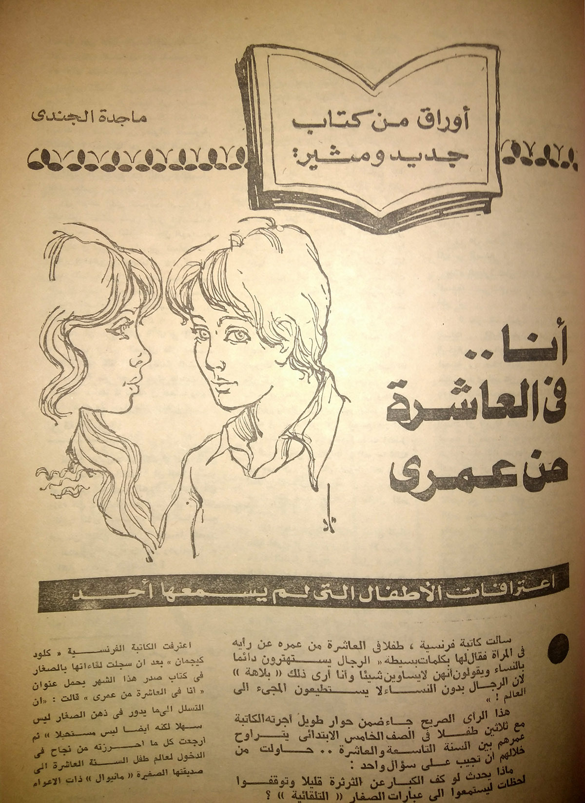 وتحاور الدكتور أنور عبدالملك وتكتب تحقيقا عن حوارها معه بعنوان: “نظرة مفكر مصري في فرنسا” عام 1975. وتكتب عن ملابس الجامعة وعن الضجيج في الشوارع. وعن ثورة يوليو والثقافة وتعرض كتب لأهم المفكرين.