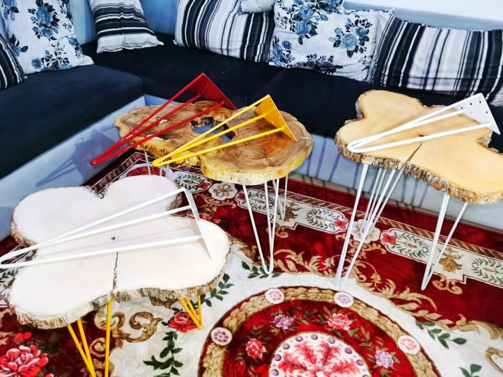 وتابع: كنت أهوى الرسم أيضا منذ صغري وهو ما ساعد على تعدد هواياتي، وحينما بلغت سن العشرين عملت في أحد المطاعم لكي أنفق على هواياتي كل ما أكسبه من مال، طورت من مهاراتي في صناعة المنتجات الديكورية، ومنذ فترة بدأت العمل في ورشة صغيرة أبيع فيها المنتجات مثل المناضد الديكورية والأشجار المضيئة وأباجورات وغيرها التي يطلبها الزبائن بأشكال معينة.