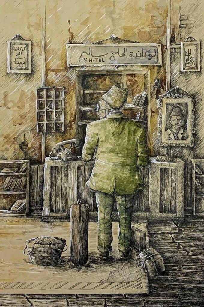 كما أنني أردت من خلاله أن أعطي إحساسًا بالجو الحالم، كما استعنت بأشياء مشتركة بين أغلبنا مثل العروسة “الكرومبة” إذ إنني أردت أن ارسم أشياء مشتركة بين جميع الناس، كي يصل إليهم إحساس الدفء والحنان للطفولة، كذلك استخدمت لعبة “النحلة” و”البلي” لأنهم يشكلون وجدان أغلب هذا الجيل.