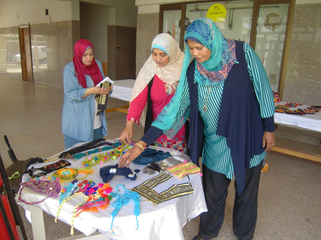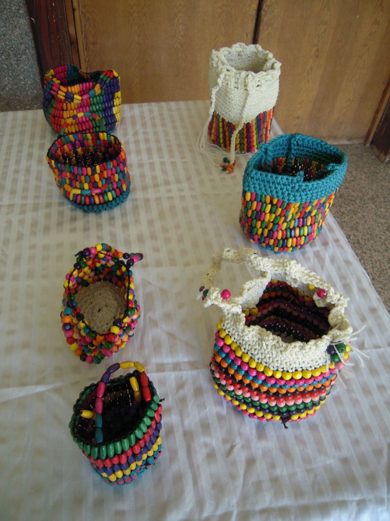 وأضافت: “نظمنا ورش فنية أيضا لتعليم الفتيات والسيدات كيفية تصنيع الحلي والإكسسوارات من الخرز الحجري، الذي يصنع منه العقود والأنسيالات وجرابات التليفونات المحمولة والشنط، كما يضم المعرض العديد من الحلي المصنوع من بواقي الأقمشة للاستفادة منها في أشياء مفيدة بدلا من التخلص منها”.وأشارت إلى أن معرض الحرف التراثية يضم أيضا العديد من الأعمال الفنية التي تعلمتها الفتيات في ورش التطريز مثل صناعة المفارش وملايات الأسرة والخداديات وغيرها، كما يضم شنط مصنوعة من قماش الجوخ؛ تستخدم في أغراض مختلفة وتتميز بشكلها الجمالي الرائع.