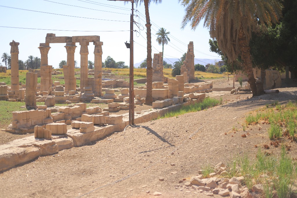 هذا التنوع المعماري جعله أشبه بمعبد مفتوح يضم عناصر نادرة، من بينها بحيرة مرتبطة بقناة نهر النيل، تشبه تلك الموجودة في معبد الكرنك وطريق الكباش الذي شيده الملك “نختنبو” من الأسرة الثلاثين، إضافة إلى صروح تعود إلى الإمبراطور “تيبيريوس” الذي أعاد استخدام أحجار من عصر الملك سنوسرت الثالث.