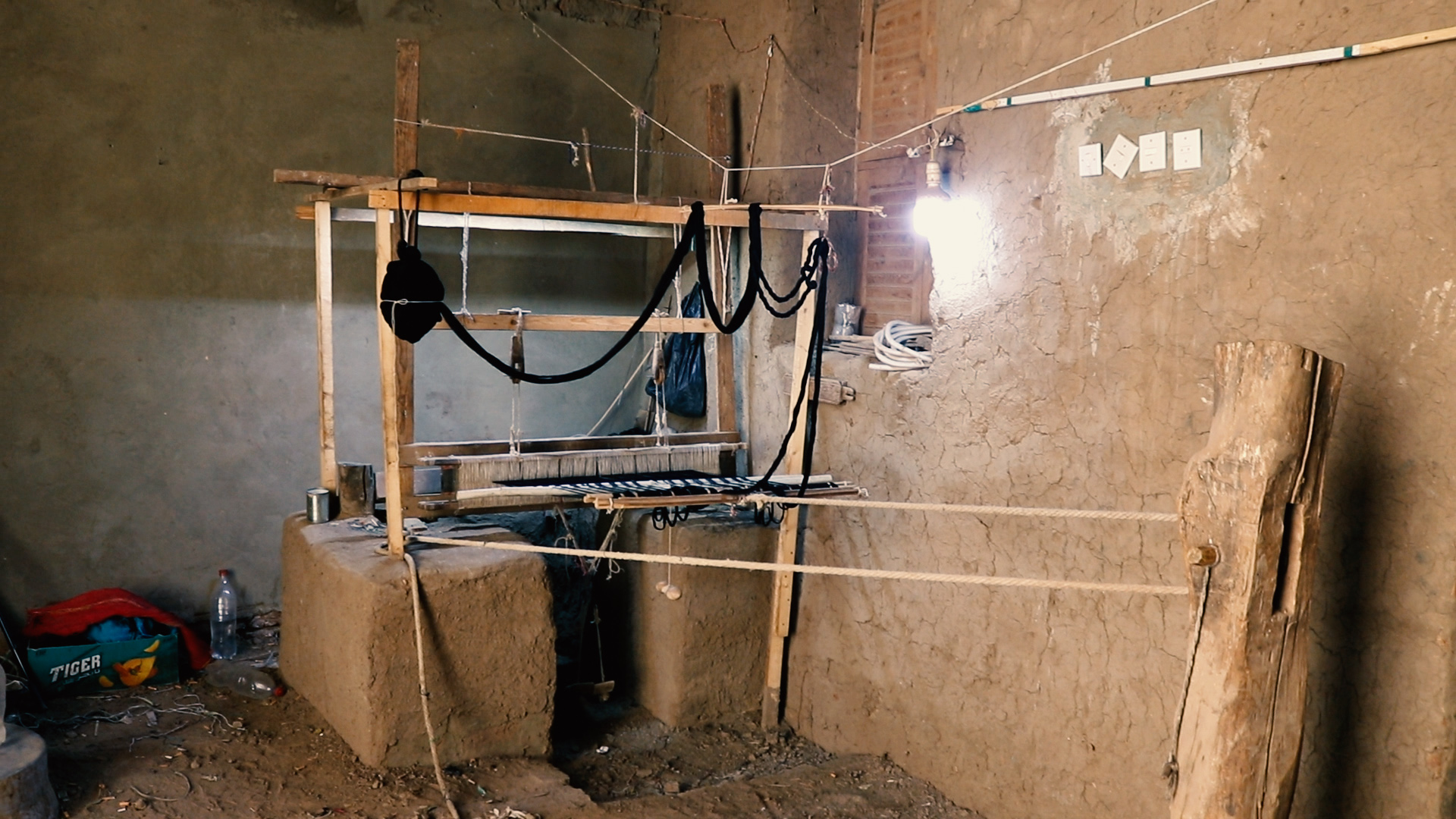 يبدأ العمري يومه بدخول المشغل الذي يستأجره من أحد جيرانه، ثم يتفقد المكان بنظرة سريعة. ويتأكد من توافر الخيوط في “البسطة”، قبل أن يجلس على كرسيه الصغير أمام النول الخشبي. محركا بيديه “المكوك” الذي يحمل الخيوط لينسج قطعة فِركة جديدة.