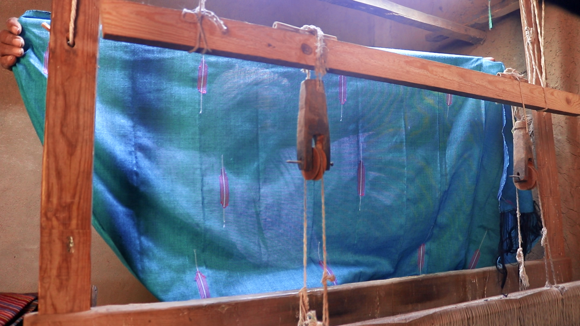 بعدها تُفرد “البسطة”، وهي قاعدة الخيوط. ويبدأ الغزل بالمكوك لتداخل الخيوط وتشابكها حتى تتكون قطعة كبيرة من الشيلان أو الطرح أو الملايات.