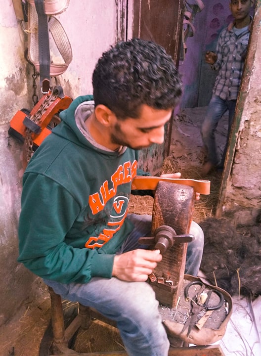 يقول أحمد حمدي صوفي 29 سنة، وحاصل على دبلوم فني، أعمل في هذه المهنة مع والدي منذ طفولتي ولا أعرف مهنة أو حرفة غيرها، لذلك أري أن من واجبي المحافظة عليها من الاندثار فنحن في صراع مع الزمن، أعمل في الورشة مع والدي أنا وأخوتي لإنتاج كل احتياجات السروج البلدية أي تلك التي تستخدم للخيول والبغال والحمير التي تجر عربات الكارو.