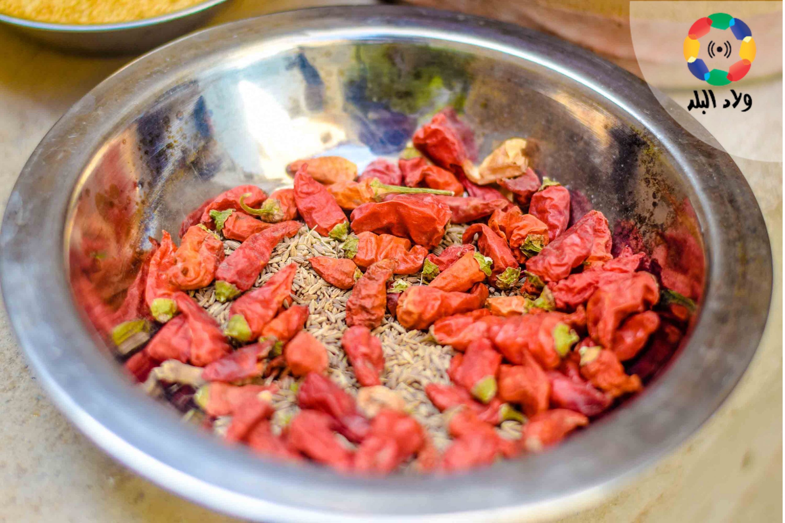 يحمص القرطم وكذلك السمسم جيدا حتى يتغير لونهما، وبعدها نصحن الكسبرة والقرطم والسمسم بعد تحميصهم، ثم نضيف جميع المكونات على بعضها بعد إضافة الملح والشطة والكمون.