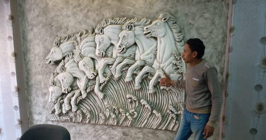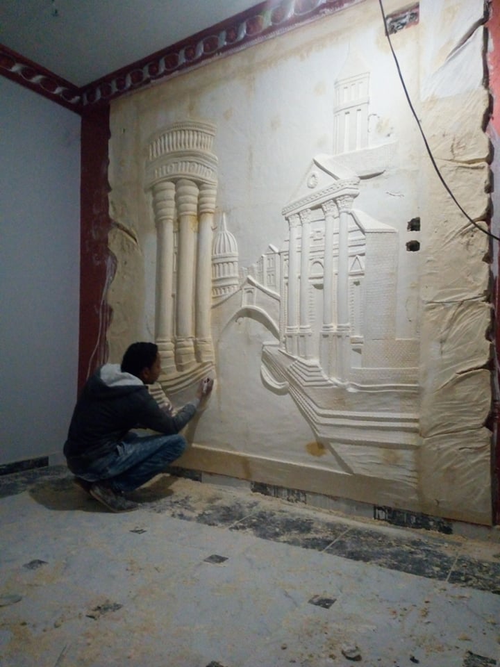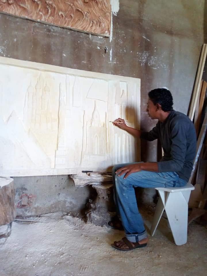 نحات بالفطرة يعيد جداريات الفراعنة للمنازل المصرية