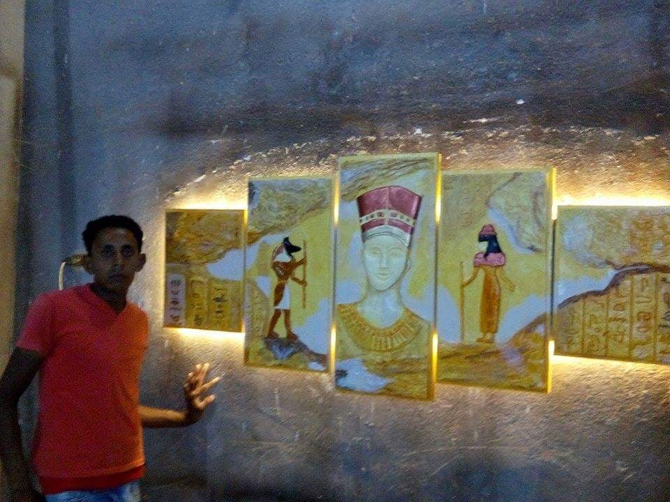 «الحضارة المصرية القديمة جزء من هويتنا، يجب أن نحافظ عليها بوجود ما يرمز إليها في كل بيت مصري» هذا ما آمن به شاب ريفي بسيط عاشق للحضارة المصرية بمختلف الأزمنة، مارس هوايته المفضلة (النحت والرسم) حتى أصبح محترفا بالفطرة دون دراسة متخصصة، يجلس أمام الحائط فيعيد بيديه تشكيلها، مستنسخا قطعة فريدة من جداريات مصر القديمة الخالدة حتى الآن.