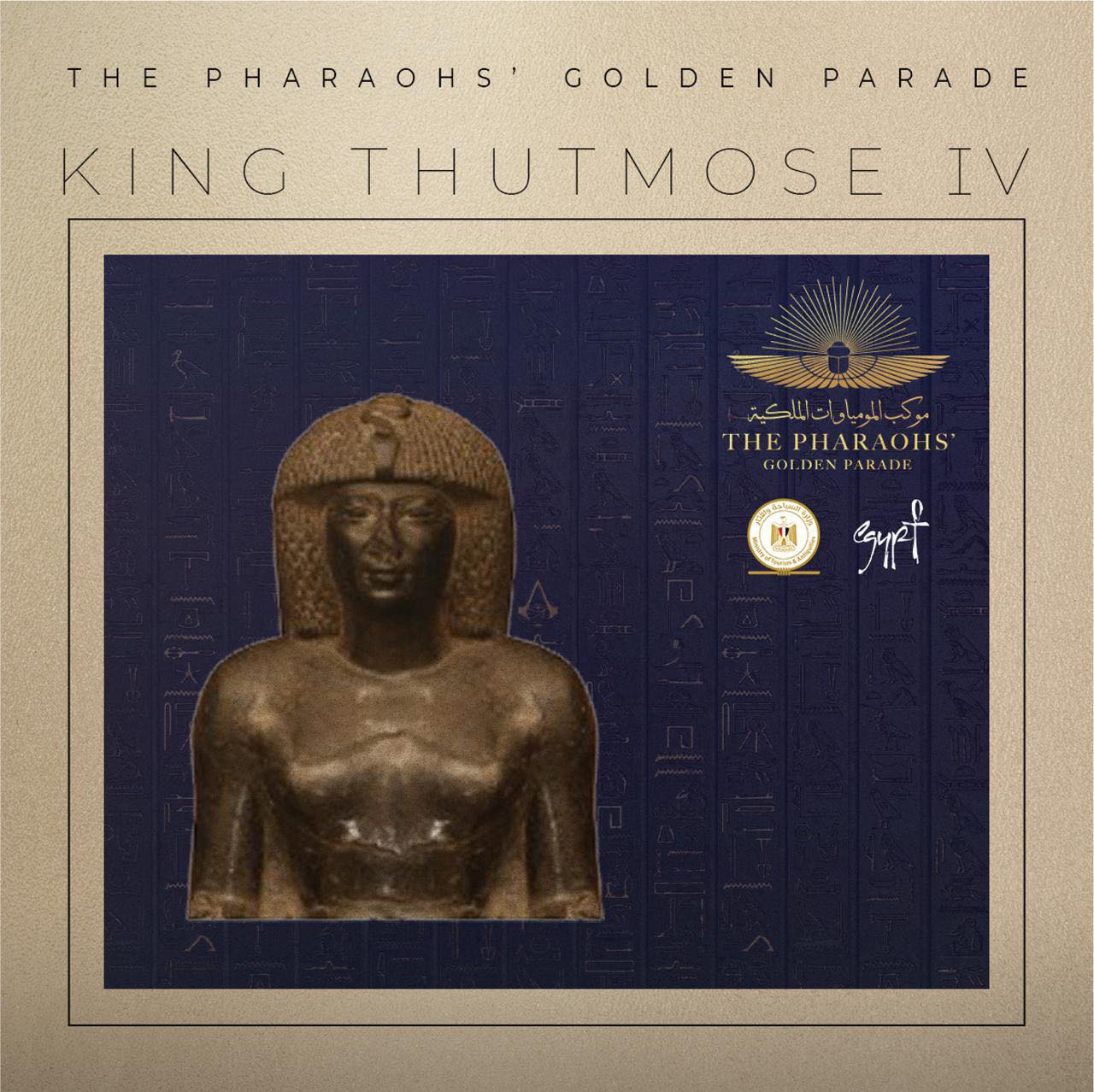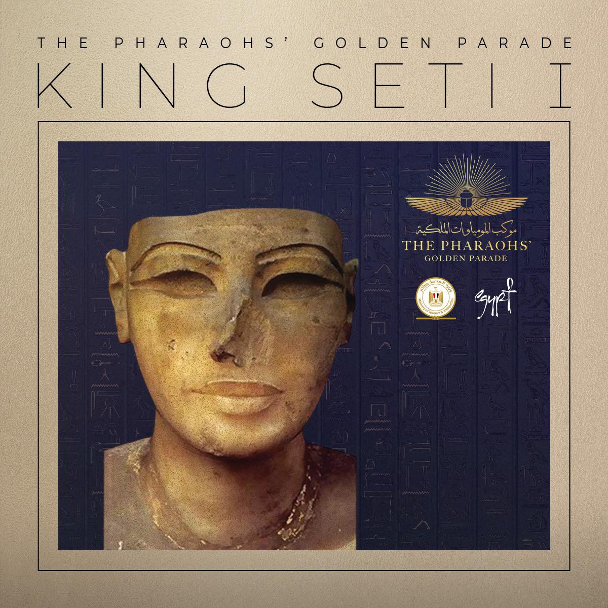 الموكب الملكي يقوده 3 مومياوات: مومياء الملك «رمسيس الثاني»، ومومياء الملكة «حتشبسوت» ومومياء «تحتمس الأول»، ويبدأ الموكب بإطلاق 22 طلقة مدفعية لتحية الملوك الذين سيتم نقلهم في عربات ملكية صُممت خصيصا للموكب، ويهتم الكثير بمعرفة تاريخ الملوك والملكات التي يتم نقلها من المتحف المصري بالتحرير لمتحف الحضارة بالفسطاط. «باب مصر» يستعرض تاريخ لعدد من المومياوات التي ترجع إلى عصر الأسر 17 و 18 و 19 و 20.