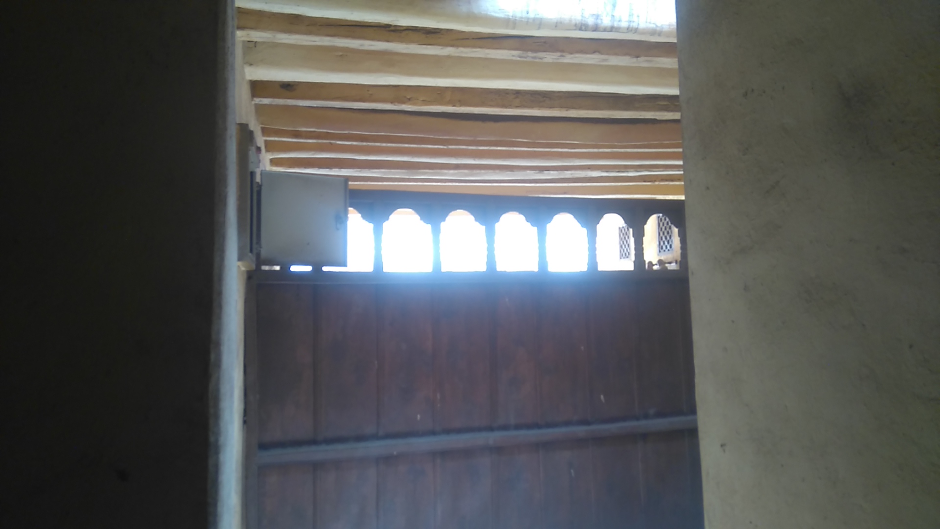 في منتصف الشارع العتيق وقفنا أمام باب خشبي مرتفع يحيط به من الخارج زخرفة تاريخية، وإذا رفعت عينيك قليلا شاهدت شرفة خشبية مكونة من شبابيك مخرمة، إنها وكالة شلبي.