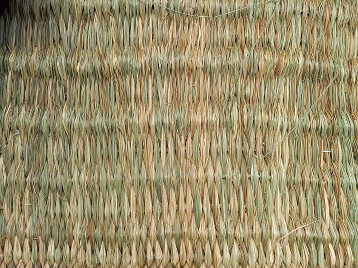 وبعدها يقوم الدسوقي بعملية “الفتل” حبل وراء حبل بطول 3 أمتار. ثم يضعهم على لوحات خشبية مثبتة في الأرض، تشبه قليلا النول اليدوي. ويملأ الفراغات بالحبال ويربطها بعضها البعض. ومنها يقوم بكي الحصير بقطعة حديد ثقيلة، حتى يصبح الحلف ناعما للغاية ويتمكن الأفراد من الجلوس عليه.
