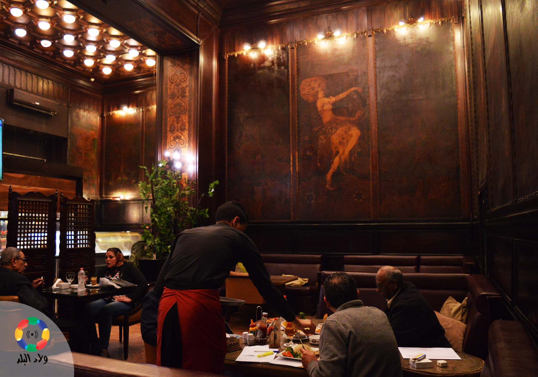 وبترحاب وابتسامة. يتابع المصري حديثه عن المطعم التراثي “عندما قام جدي وشركاؤه بشراء المطعم، كان كما تشاهدونه الآن بنفس الرسومات على الحوائط والأسقف والتي صممها ورسمها فنان إيطالي في عشرينات القرن الماضي تقريباً، وقد طعمها ببعض اللمسات الشرقية”.
