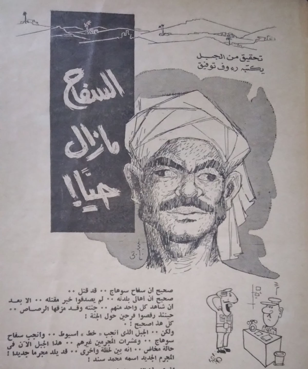 ذهب رؤوف توفيق إلى اللواء محمود رياض، مدير أمن سوهاج، ليسأله عن قصة السفاح وكيف تم القضاء عليه بعد سنوات من ترويع أهالي المنطقة. فأجابه مدير الأمن: