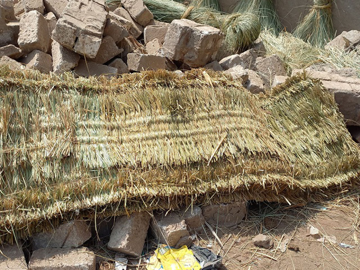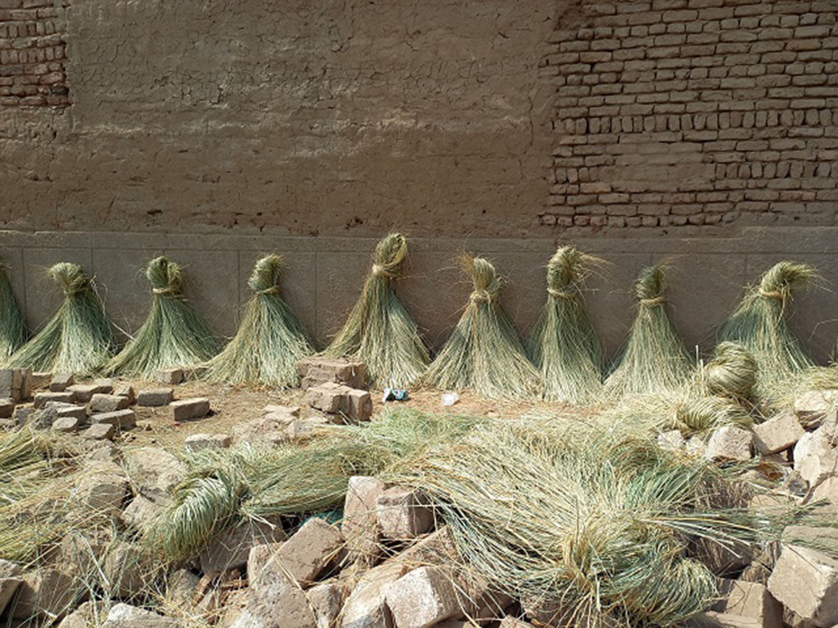وتابع: أعمل أمام منزلي، حيث أضع نبات الحلف جواري الذي يتم جلبه من الأماكن القريبة للترع. وأتركه في الهواء كي يجف وأتمكن من العمل به بعد ذلك، وأشهر ما أصنعه من نبات الحلف “الحصير البلدي”.