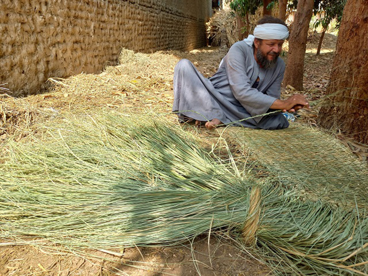 وتابع: الآن لا أستطيع الذهاب إلى القرى البعيدة للتسويق. والحصير البلدي الآن يستخدمها الأهالي إما في الجلوس عليها في الشارع أو تستخدمه السيدات في المنازل يضعن الخبز الساخن عليه. وهذا يرجع لاستخدام الحصر المصنوعة من البلاستيك والسجاد الحديث مواكبة للعصر.