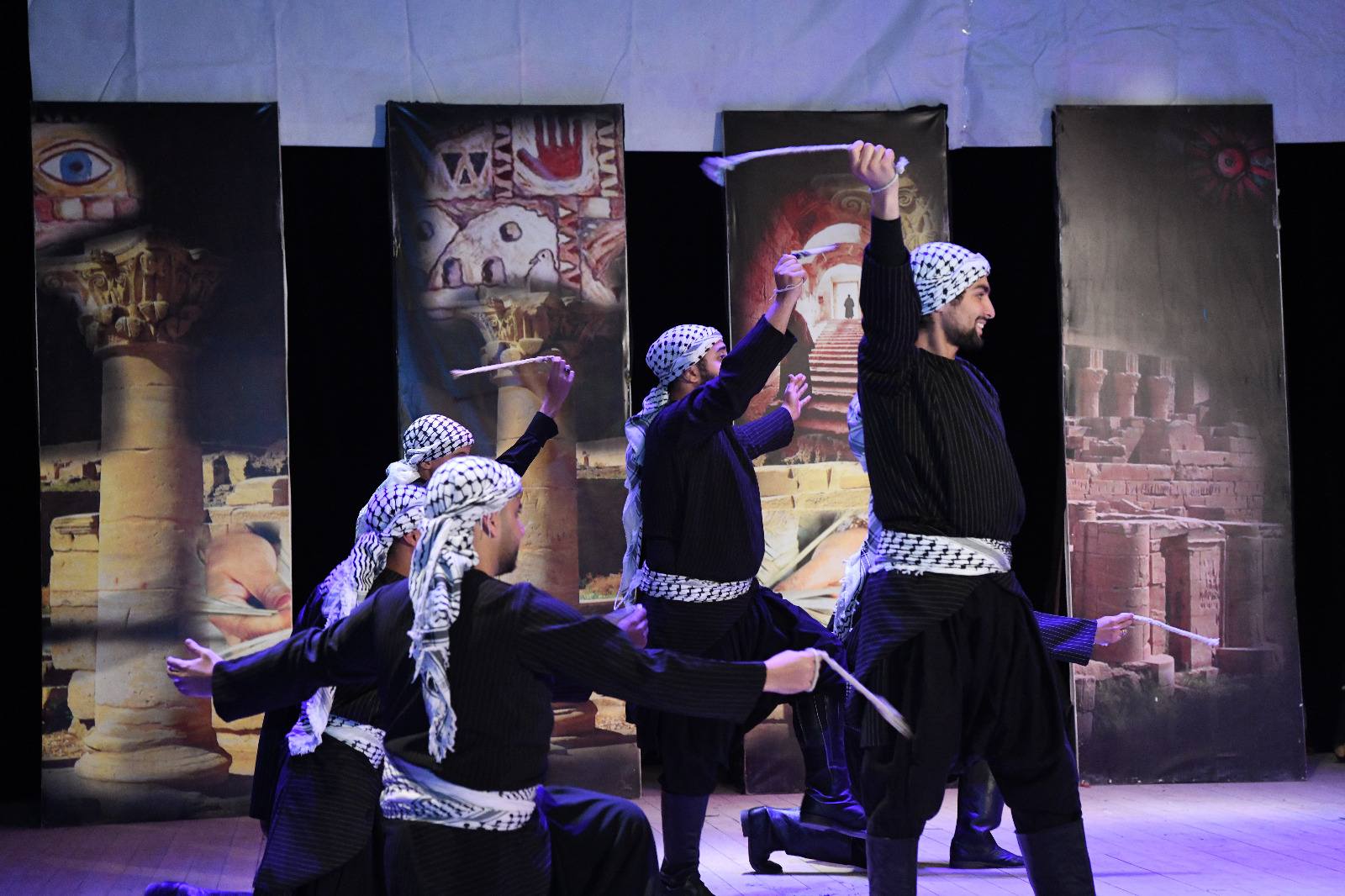 على مسرح قصر ثقافة قنا، قدمت فرقت “الفلوجة” الفلسطينية عددا من العروض التي عبرت عن التراث الفلسطيني الأصيل والمقاوم للحرب والعبودية، بحضور المحافظ وعدد من الشباب والفنانين والمثقفين.