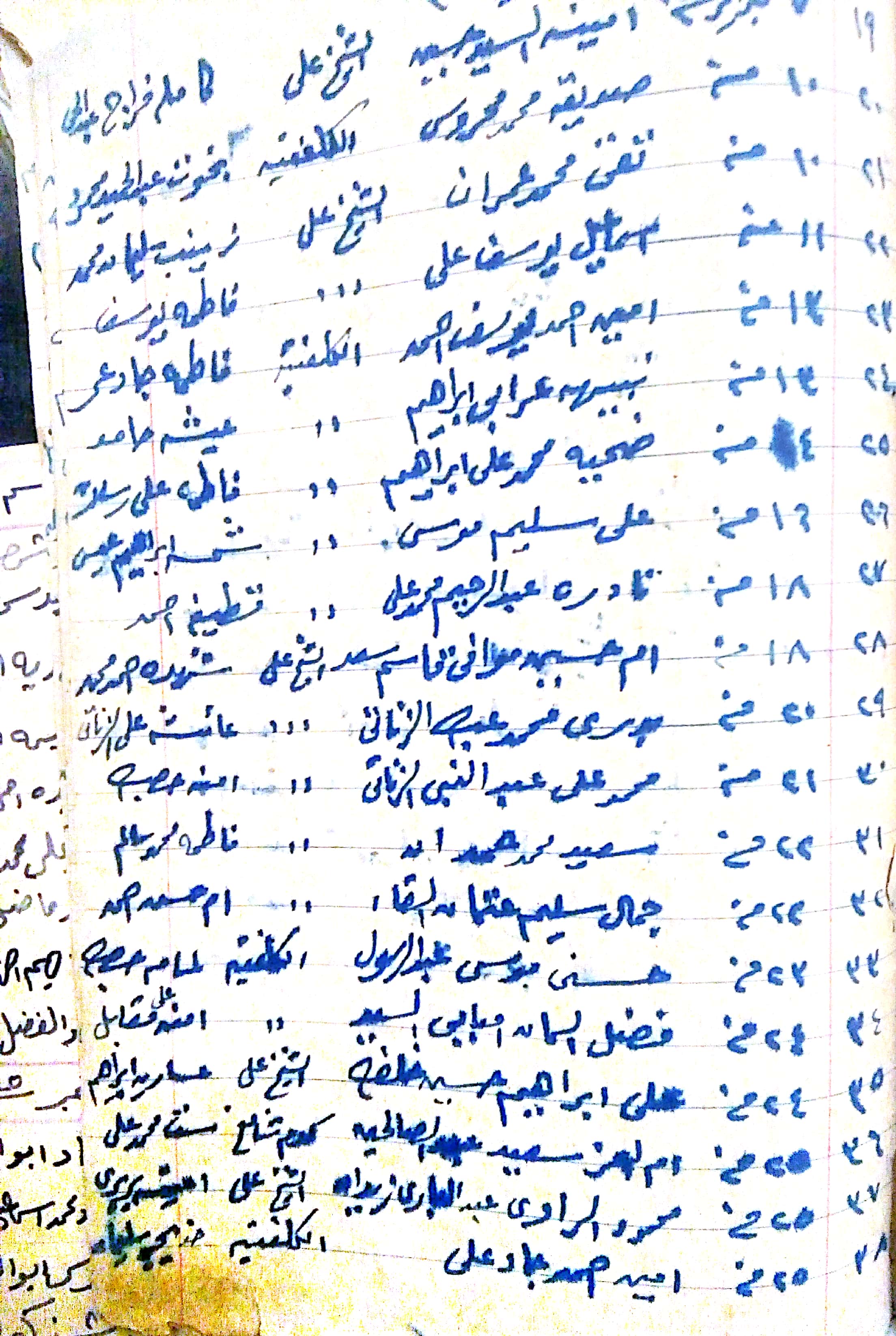 “محنة كورونا مش هتكون أبدا زي الكوليرا.. الناس كانت تتكب زي الفروج على طول”، بلهجة صعيدية حكا الجد محمد محمود طه، عامل تليفونات، ولديه قوائم بأسماء ضحايا الكوليرا في ذلك الوقت.