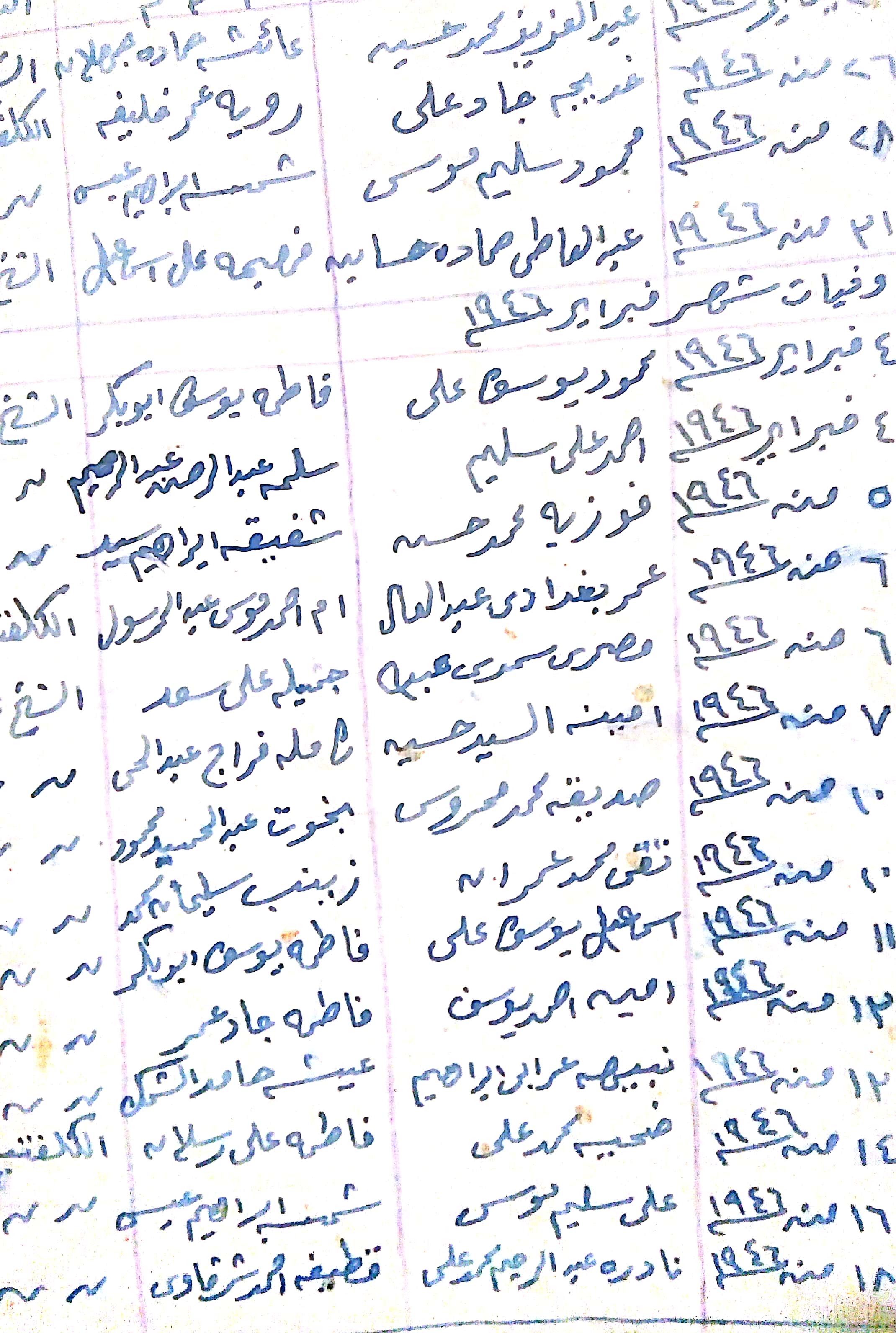 الدفاتر التي أطلعنا عليها كاتب الخفر عبارة عن كراستين قديمتين بدا عليهم القدم.. علاوة على الحبر والكتابة، أحدهما على 22 ورقة، والأخرى 18ورقة، وبعض الورق لمواليد أعوام متفرقة. مثل: 1925 و1899 وقوائم لمواليد 1903.