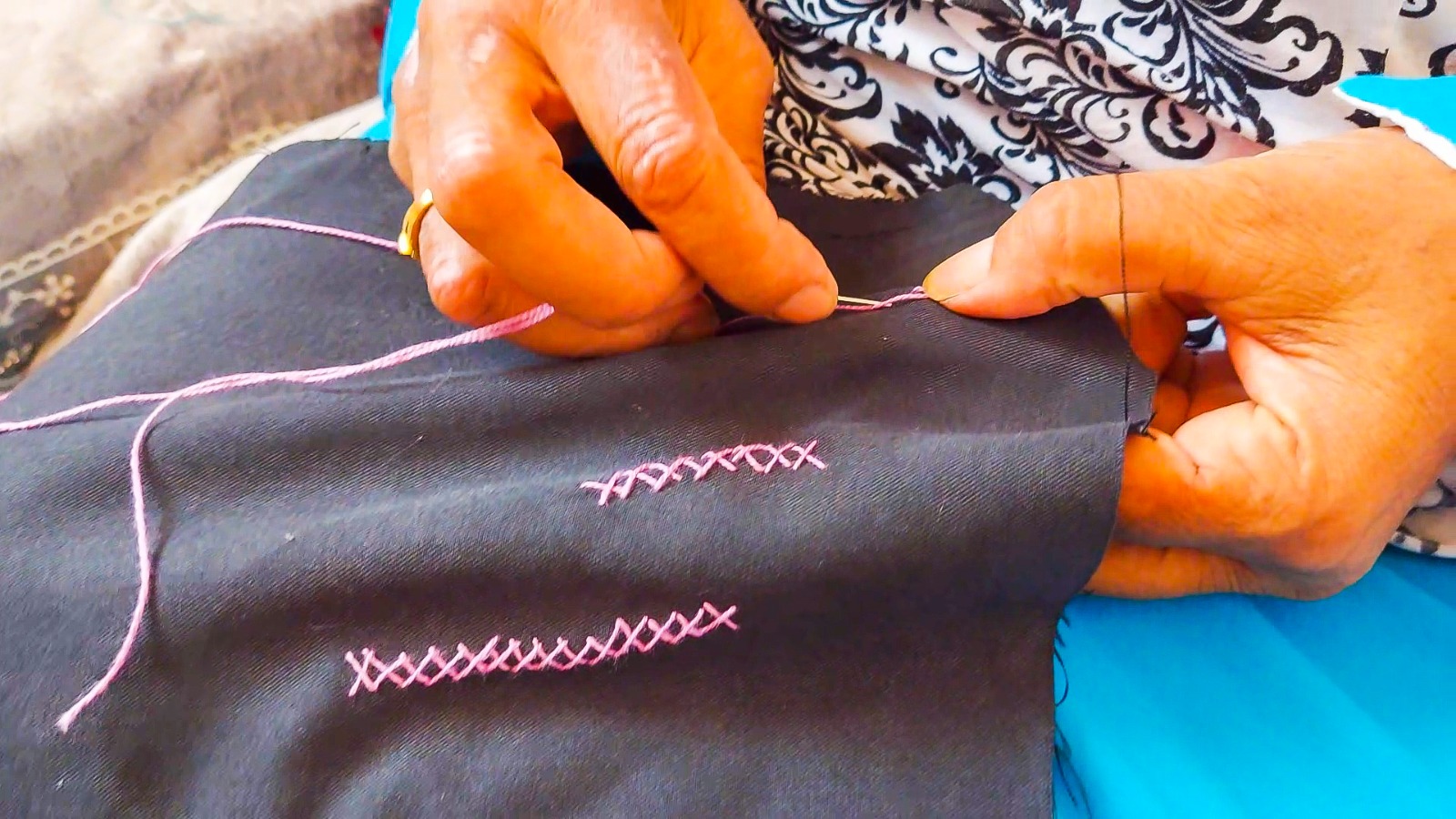 وبثباتٍ لا يقل عن صلابة نخلةٍ تواجه الرياح، قررت “أم هادي” ألا تترك المهنة تندثر أو تموت على حد تعبيرها. وتتابع: “مع مرور الوقت، تراجع الإقبال عليه بسبب انتشار الملابس الجاهزة، والاتجاه نحو الموضة الدخيلة على ثقافتنا وهويتنا. لكني قررت ألا أترك المهنة تموت، فظللت أطرّز، وعلمت أولادي وأحفادي هذه المهنة، علمتهم كيف يحيكون ثوب الواحة”.