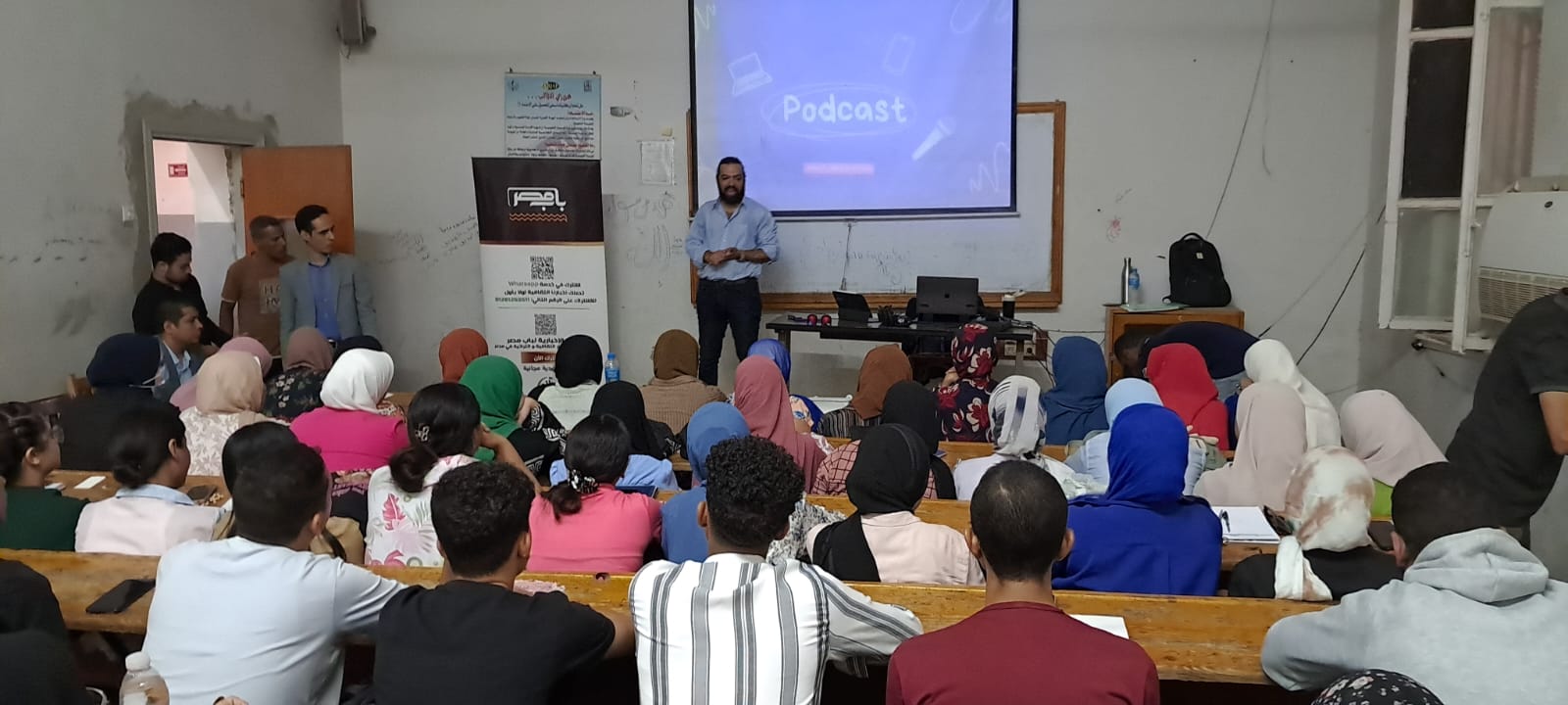 نظم موقع «باب مصر» الإلكتروني التابع لشركة «ولاد البلد للخدمات الإعلامية»، اليوم الأربعاء، ورشة تدريبية عن التدوين الصوتي «بودكاست» لطلبة وطالبات قسم الإعلام بكلية الآداب جامعة أسيوط. تحت رعاية الدكتور أحمد المنشاوي، رئيس الجامعة، والدكتور مجدي علوان، عميد كلية الآداب. وإشراف الدكتورة رحاب الداخلي، رئيس قسم الإعلام المستشار الإعلامي لرئيس الجامعة. وتنظيم الدكتور عبداللاه خليفة، مدرس الصحافة المساعد بقسم الإعلام.