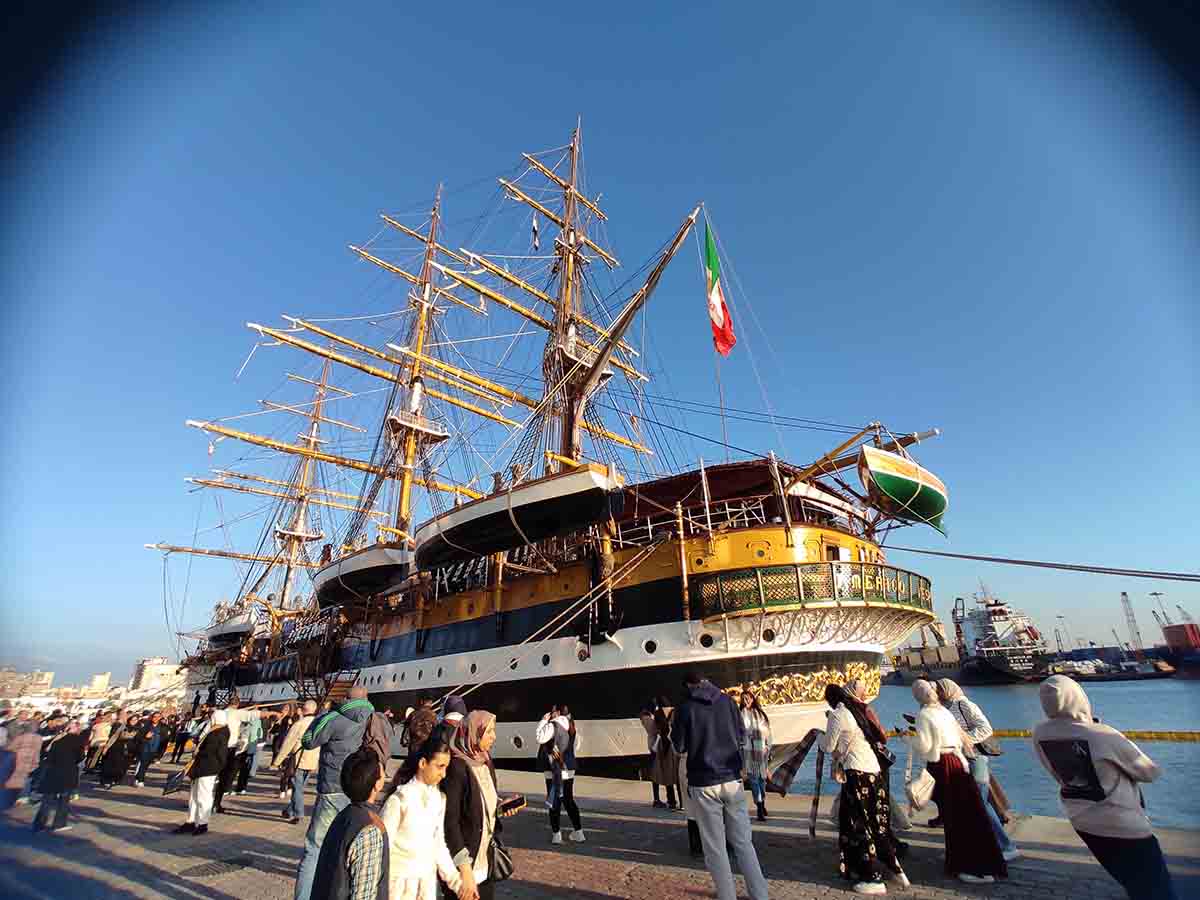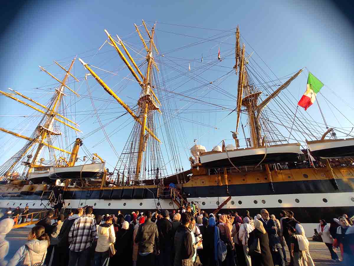وتابع: “أعلنا قبل وصول السفينة بأيام عن فتح باب التسجيل لمن يرغب في زيارة السفينة وتفقدها عبر الموقع الرسمي. للحصول على كود الدخول واختيار الموعد المناسب للزيارة. وكان المطلوب فقط التسجيل بالرقم القومي للمصريين أو جواز السفر للأجانب”. وأضاف أن السفينة زارت أكثر من 30 دولة خلال الـ20 شهرا الماضية، ومرت على 5 قارات. وكان ميناء الإسكندرية محطتها الأخيرة قبل اختتام جولتها العالمية والعودة إلى إيطاليا في فبراير الجاري.