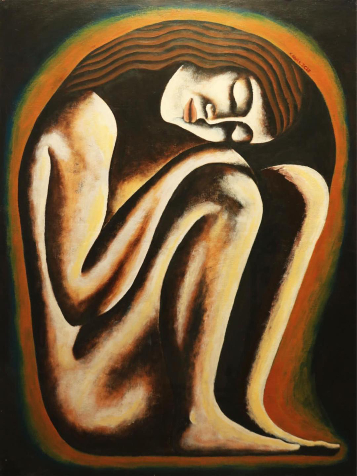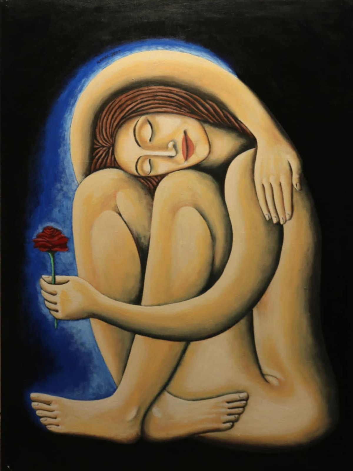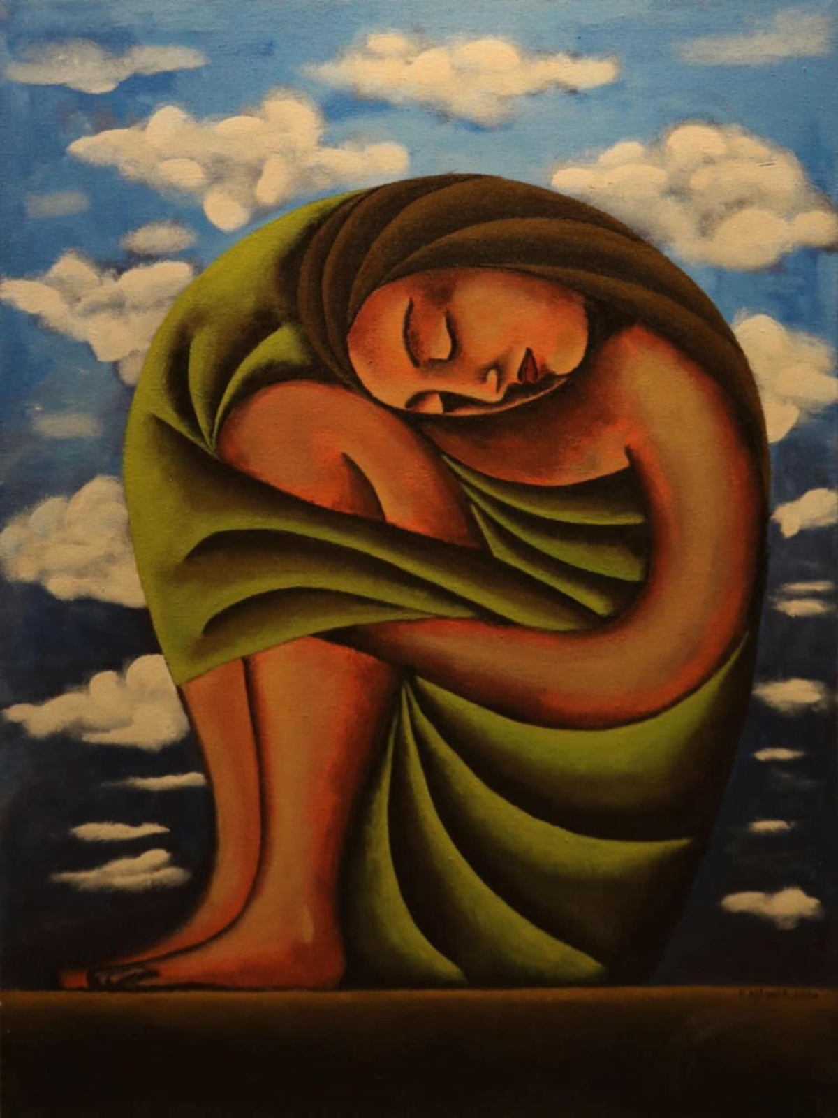 تم تنفيذ مجموعة الجميلات النائمات على غرار تماثيل الكتلة في الفن المصري القديم، حيث قمت بتصوير المرأة في وضع الجلوس وهي نائمة. وتضم المجموعة الكثير من المعالجات المختلفة، لكن بنفس الوضعية. بالطبع، لم يكن هذا مخططا بشكل مسبق، بل كان بداية عندما وضعت أول معالجة للخطوط في أول لوحة. ثم وجدت نفسي أرغب في تنفيذ لوحة أخرى بنفس الوضعية، ولكن مع معالجة وخطوط مختلفة. وتوالت الأشكال في ذهني، وعندما كنت أقرر أن تلك آخر لوحة، كنت أجد أن هناك فكرة جديدة تظهر في مخيلتي، وكأنني أكتب مذكرات دون تفكير.