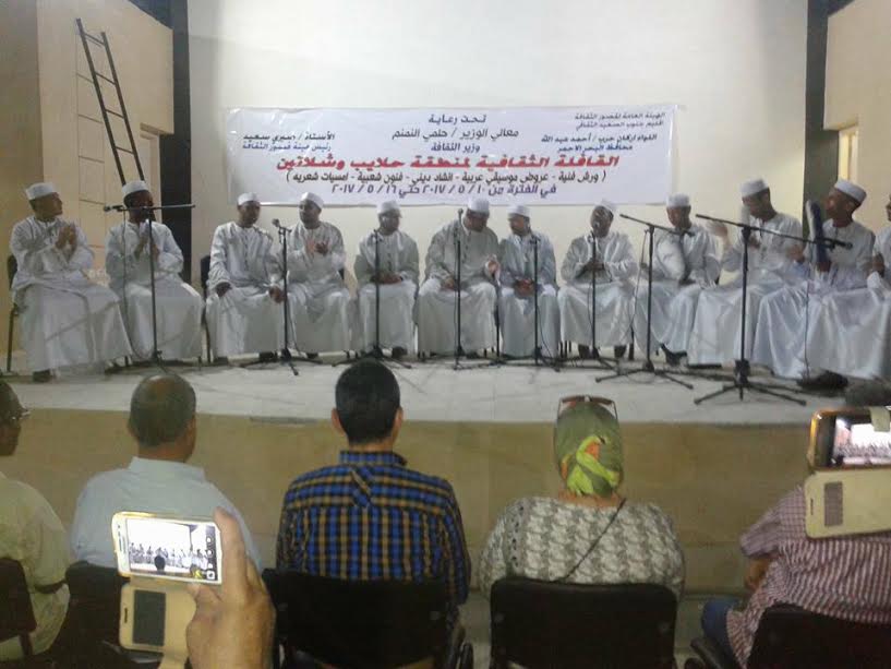 وفى حلايب استكملت الورشة الفنية تحت إشراف الفنانة كريمة الديب، نشاطها فى تعليم الأطفال فن تلوين الجبس، وفى عرض مبهر قدمت فرقة الأقصر للموسيقى العربية على مسرح قصر ثقافة حلايب، مجموعة من الأغانى العربية وأغانى لسيدة الغناء العربى أم كلثوم، أداها الفنان النوبى الشولي.