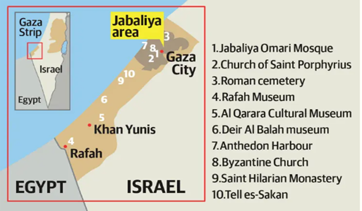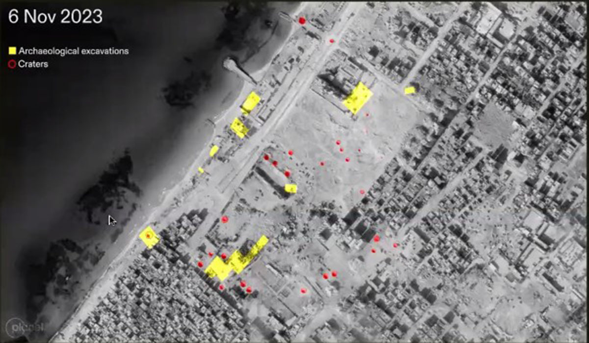 فيما أصدر المرصد الأورومتوسطي لحقوق الإنسان بيانا يوضح فيه أن إسرائيل دمرت عمدا المعالم الأثرية في قطاع غزة. في إطار حربها الدموية المستمرة في استهداف واضح للتراث الثقافي الفلسطيني. وقال الأورومتوسطي إن الهجمات الجوية والمدفعية الإسرائيلية استهدفت العديد من المواقع التاريخية البارزة والمهمة للتراث الثقافي للفلسطينيين في قطاع غزة. وقد شمل ذلك المواقع الأثرية والمباني التاريخية ودور العبادة والمتاحف. وشدد الأورومتوسطي على أن القانون الدولي الإنساني يحظر وفي كافة الأحوال الاستهداف المتعمد للمواقع الثقافية والدينية التي لا تشكل أهدافًا عسكرية مشروعة.