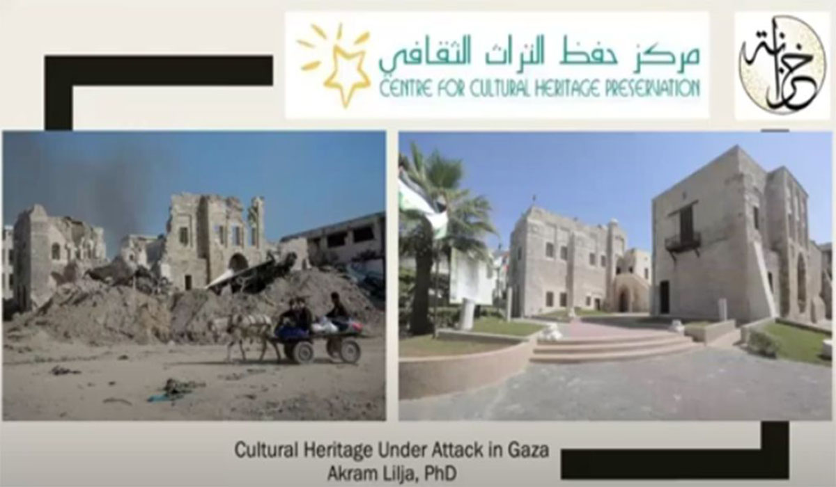 وتابع: “تعرضت غزة للعديد من الغزوات والحروب على مر العصور، مما جعلها تحمل طبقات ثقافية وتاريخية غنية. ومع ذلك، فإن التراث الثقافي في المنطقة تعرض لتهديد شديد في الوقت الحالي”. مشيرا إلى أن غزة كانت ممرا ومحلا للحروب بسبب وقوعها بين إفريقيا وآسيا، بالإضافة إلى كونها رابط للتجارة وخصوصا طريق الحرير. فترك ذلك طبقات الآثارية، واحتفى الاحتلال بتدمير المناطق الأثرية. كما احتفى قواته بوصول المنقولات الأثرية إليهم في تبجح واضح لم يدينه اليونسكو.