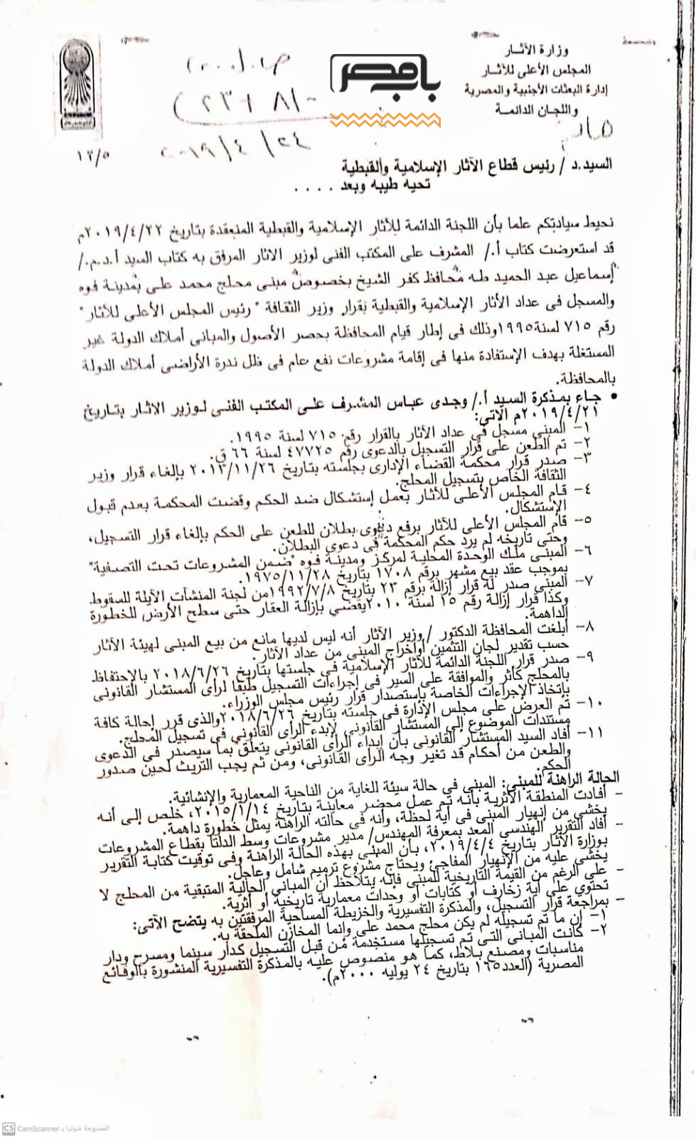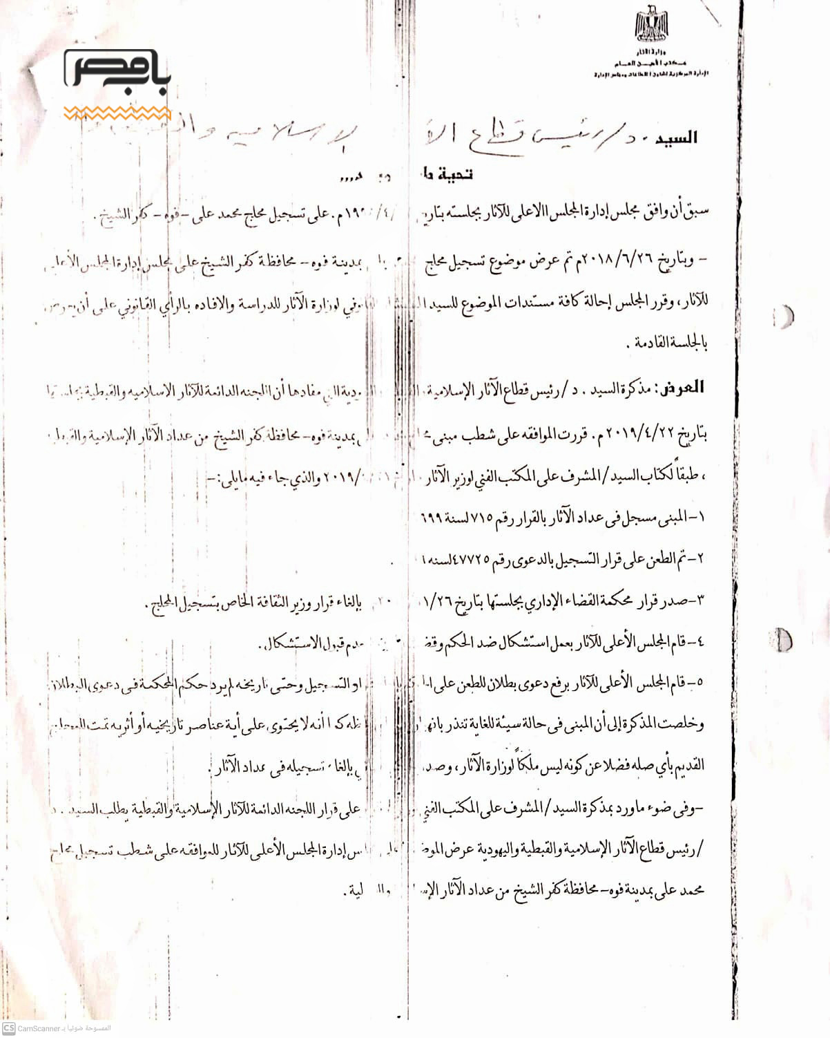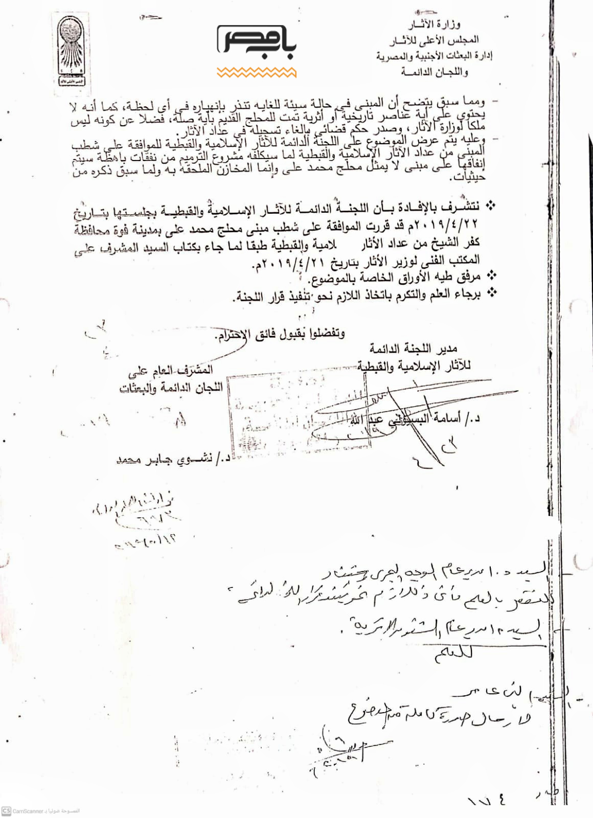 وبالفعل فقد أشار العضو القانوني داخل الوزارة وفقًا لـ”المستندات الرسمية” بضرورة التريث لحين صدور الحكم النهائي من جانب القضاء، حيث أشار في تقريره إلى أن محافظة كفر الشيخ بالفعل عرضت على وزير الآثار شراء المحلج. وأنها لا تمانع من بيع المبنى لهيئة الآثار، بناء على لجان التثمين. وإما شطبه من عداد الآثار.