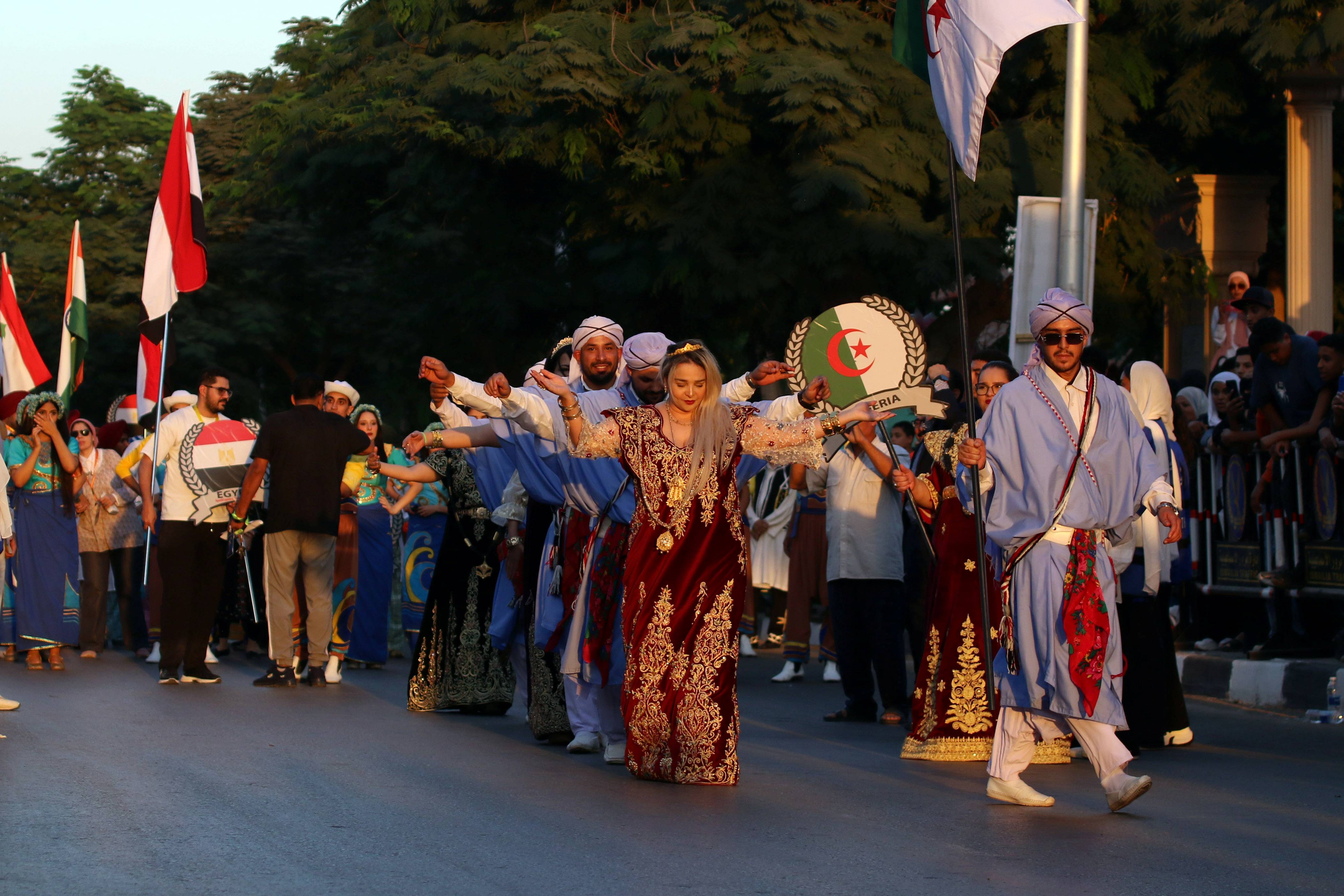 مع بدء تحضيرات الفرق لاستعراض راقص في شارع حدائق الملاحة بمدينة الإسماعيلية، بدأ العازفون في ضبط إيقاع المزمار والطبل على لحن صعيدي من المنيا، وتحرك راقصون من الأردن لأداء رقصة الدبكة، في اندماج عفوي بين رقصة شامية ولحن صعيدي.
