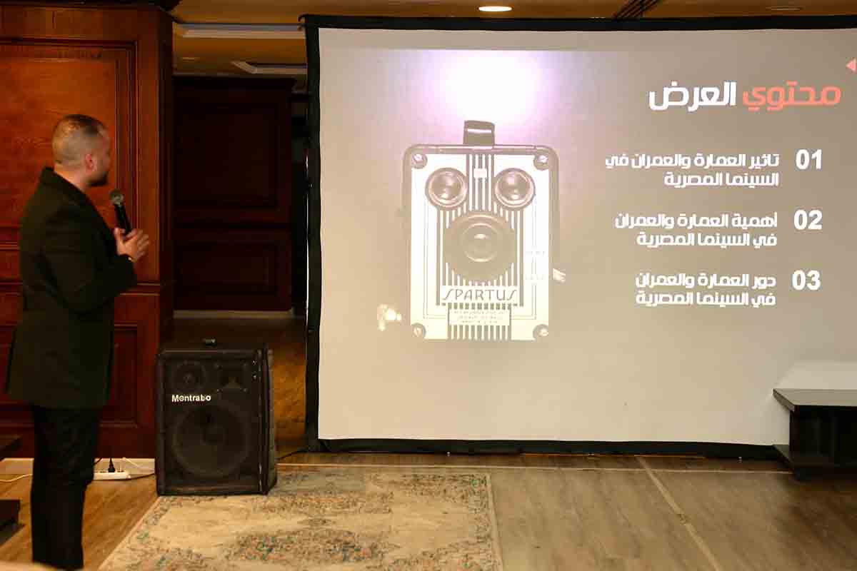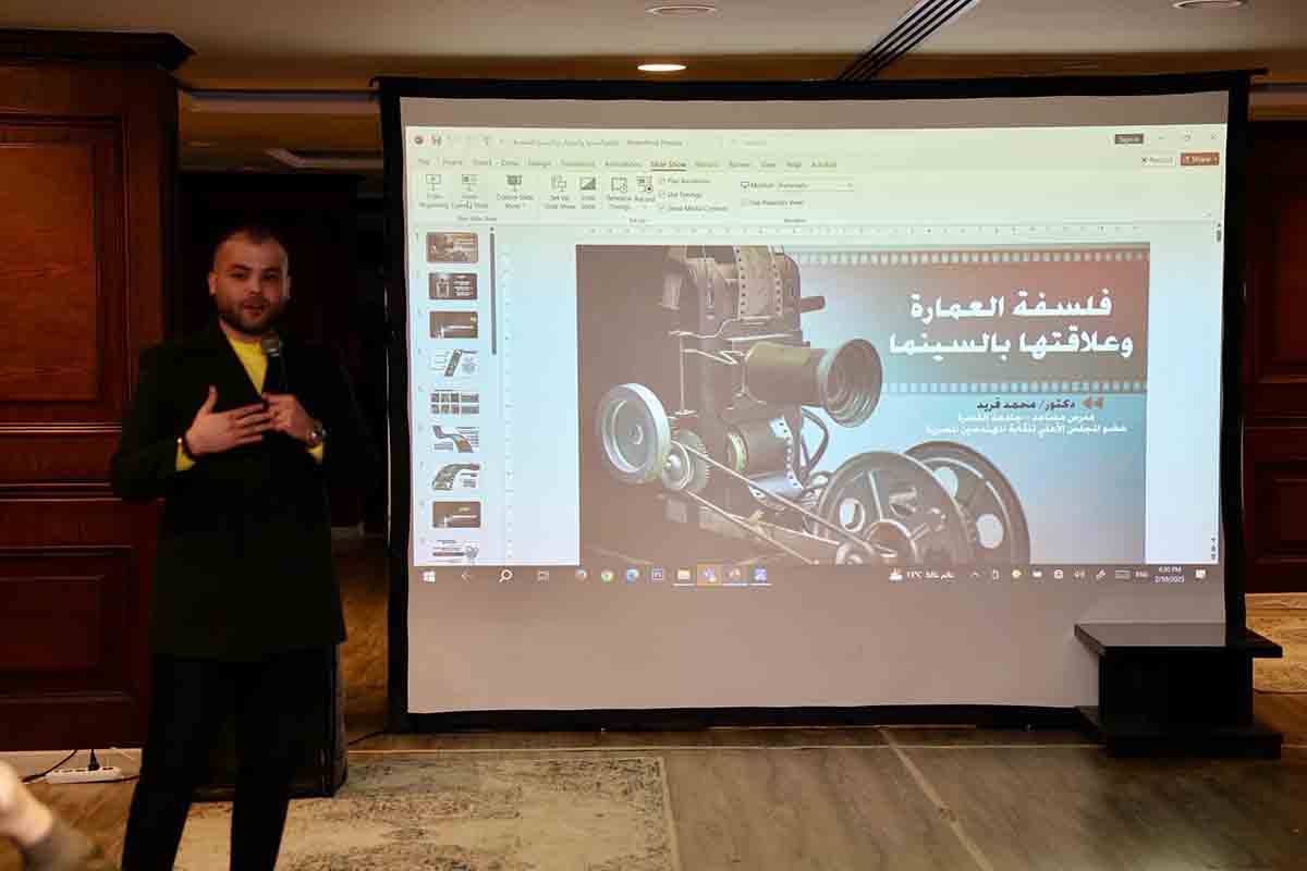 في البداية تحدث الدكتور محمد فريد، عضو المجلس الأعلى لنقابة المهندسين ومدرس مساعد بكلية الهندسة في جامعة القاهرة، عن تأثير العمارة والعمران في السينما المصرية. وأكد على الدور المحوري للعمارة في سرد القصص وتصوير الواقع. والتعبير عن التحولات الاجتماعية والثقافية التي شهدتها مصر على مر التاريخ. وذلك من خلال ثلاث نقاط رئيسة هي: تجسيد الهوية المصرية، وتصوير الواقع الاجتماعي، والتعبير عن التحولات الثقافية. إذ تجسدت الحقب التاريخية من العمارة الفرعونية القديمة إلى الإسلامية ثم العصور الحديثة والمعاصرة. مشيرا إلى أن هذه العمارة تشهد على التحولات السياسية والاجتماعية التي تؤثر في حياة الناس.