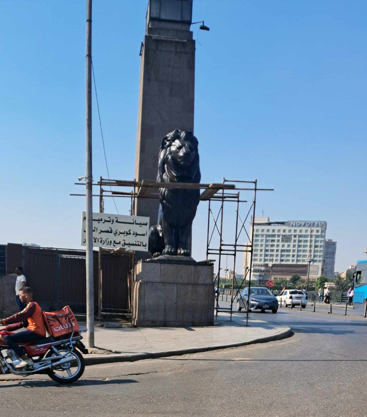 خلال أعمال ترميم كوبري قصر النيل، وجدنا أن هناك ثلاثة أعمدة من الكوبري تم سرقتها في وقت سابق؛ لذلك، أعدنا الأعمدة باستخدام نفس المواد الأصلية. كما كشفنا عن الزاوية المعدنية الأصلية للرصيف، وقمنا برصفه بنفس مستوى المنسوب الأصلي. ورممنا أيضًا سور الكوبري وأزلنا كافة طبقات الطلاء التي شوهته لسنوات. أما بالنسبة لتماثيل كوبري قصر النيل، فقد قمنا بتحويطها بسواتر قماشية، واستخدمنا مواد دقيقة لإزالة التشوهات والأتربة من التماثيل، خاصة بعد أن لاحظنا الكثير من الكتابات والرسومات عليها. وقد راعينا أثناء عملية الترميم الاحتفاظ بطبقة «الباتينا»، وهي طبقة التراكم التاريخي التي تحافظ على علامات الزمن بالنسبة للتمثال.