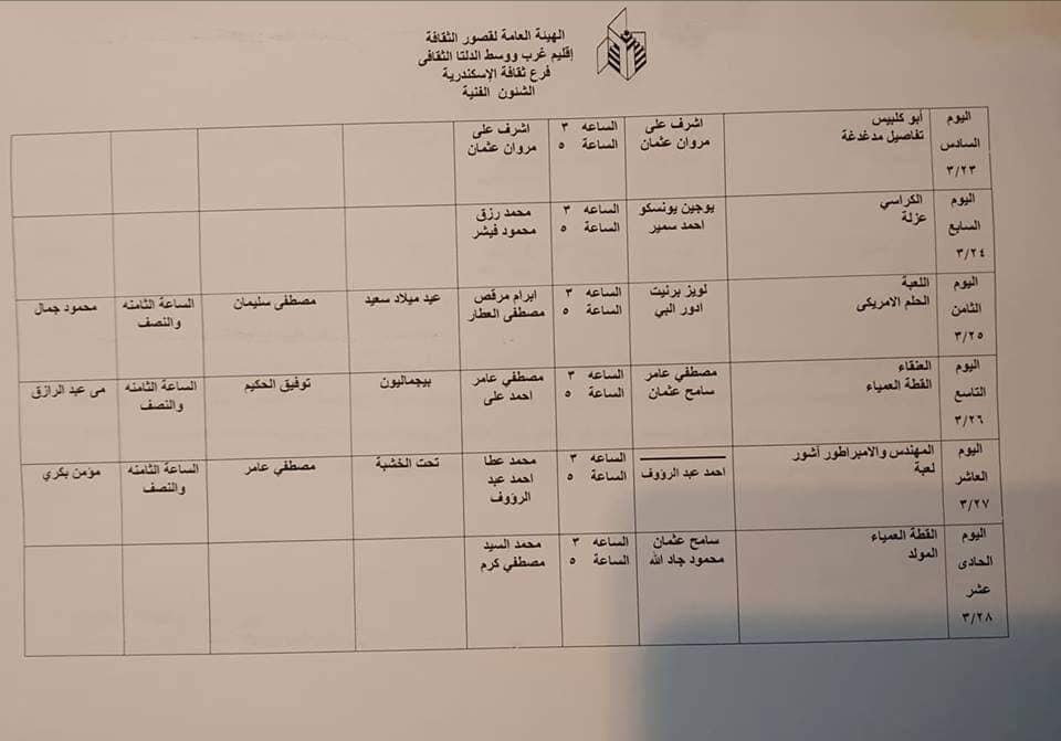 الإعلان عن جدول مهرجان نوادي المسرح بثقافة الإسكندرية