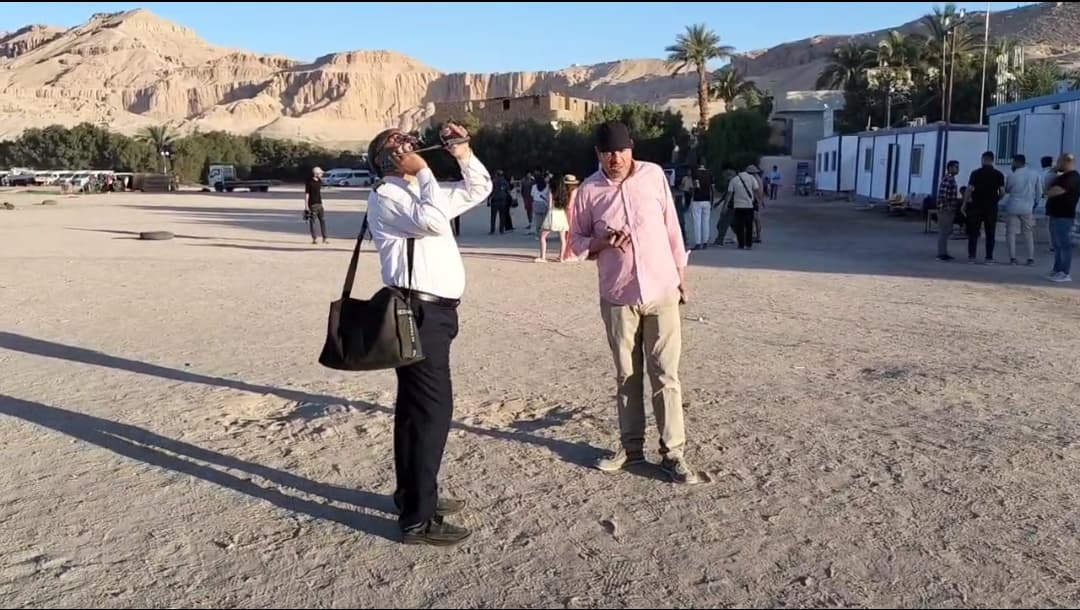 وبينما كنا نستمتع بمشهد بانورامي نادر لوادي الملوك، انطلق صوت من اللاسلكي ينبه الكابتن عبود بقرب انتهاء الوقت المسموح للطيران. بدأ على الفور في المناورة استعدادا للهبوط، لكن الرياح لم تكن في صفه هذه المرة. حاول الهبوط أكثر من مرة دون جدوى، إلا أن الرياح كانت تعانده وتدفع البالون بعيدًا. في لحظة حاسمة، ألقى عبود بحبل طويل إلى فريق “الدعم الأرضي – الكرو”، الذي كان يتتبع مسارنا بسيارات الدفع الرباعي. أمسك الفريق بالحبل، وبدأ بسحب البالون تدريجيًا نحو موقع آمن وملائم للهبوط. ومع كل هبّة ريح، كان عبود يثبت نفسه ببراعة، محافظًا على توازن السلة، وسلامة الركاب.