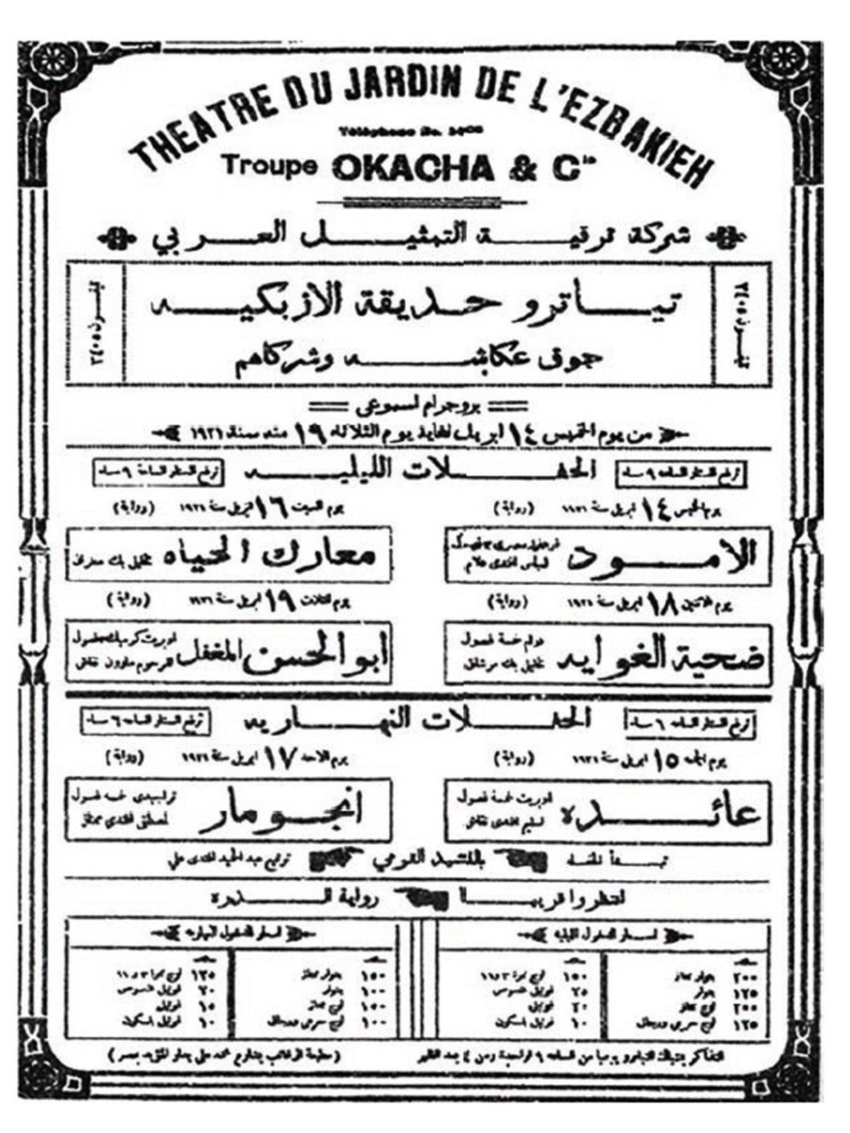 سيطر المسرح والأوبرا على رؤية الخديو إسماعيل بالنسبة لمنطقة الترفيه الجديدة بالقاهرة. وهي رؤية تحذو إلى حد كبير حذو النماذج الأوروبية باللغات الأوروبية. أراد أن يعرض لبلاطه ومعظم رعاياه من النخبة أفضل الأمثلة الموجودة من تلك الأنواع الفنية بغرض تمجيد حكمه. كان هذا الهدف في متناول يده بفضل المبالغ المالية الهائلة التي كانت متاحة بالنسبة له كحاكم لمصر. في 1869، افتتح “المسرح الفرنسي” Théâtre Français بعرض لأوبراه المفضلة هيلانة الجميلة La Belle Hélène لأوفنباخ Offenbach.**