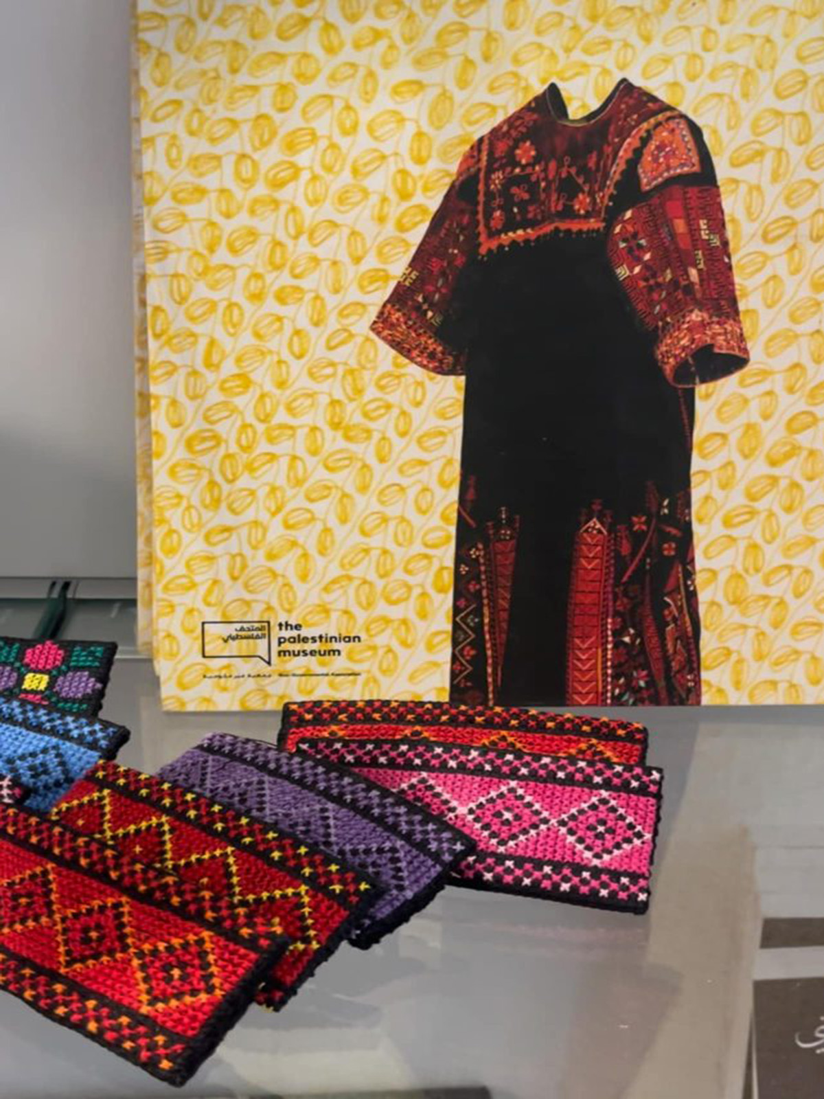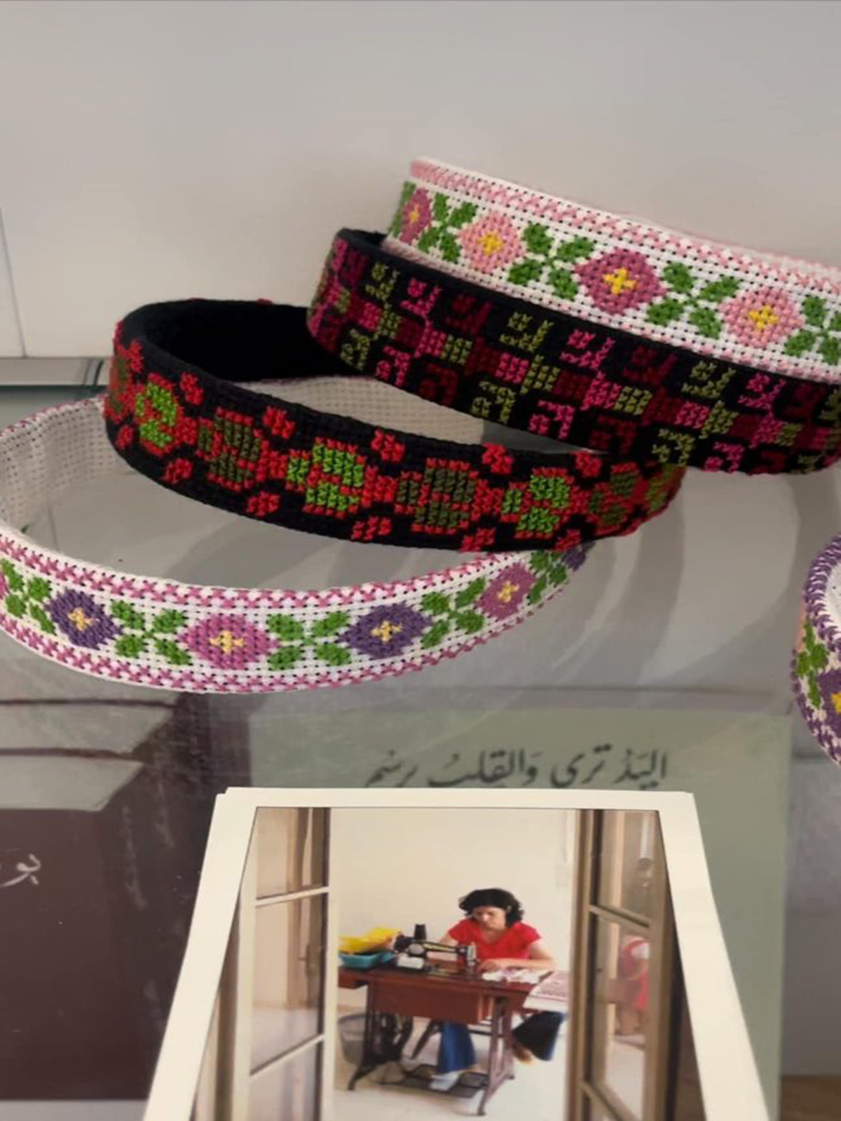 يتضمن المعرض العديد من الصور القديمة، اللوحات، الخيوط، والأثواب الفلسطينية القديمة التي قضت نهى عمرها في جمعها وشراءها وترميمها، بينها ثوب أبيض مطرز بالخيط الأحمر ويظهر توسعته بقماش ذو لون مختلف. أهدت امرأة من رام الله هذا الثوب لفلاحة فلسطينية هجرت من دارها عقب نكسة 1948، لابد أن صاحبة الثوب الجديدة كانت أطول قامة من صاحبته الأولى، فأضافت قطعة أخرى إلى منطقة بطن الثوب وظهره وجانبي الخصر لتوسيعه.