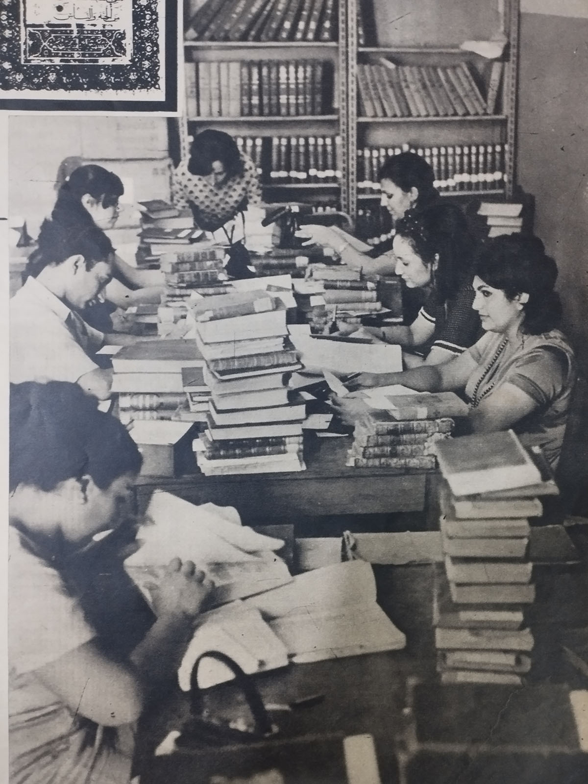 ظل دخول دار الكتب مقصورا على الرجال حتى ثلاثينيات القرن الماضي عندما دخلت السيدات الجامعة. فخصصت الدار أربعة مقاعد فقط لجلوس السيدات في نهاية قاعة المطالعة. ولم يكن يسمح لأحد من الرجال بالجلوس قريبا من هذه المقاعد، وكانت مقاعد النساء لا تشغل إلا نادرا.