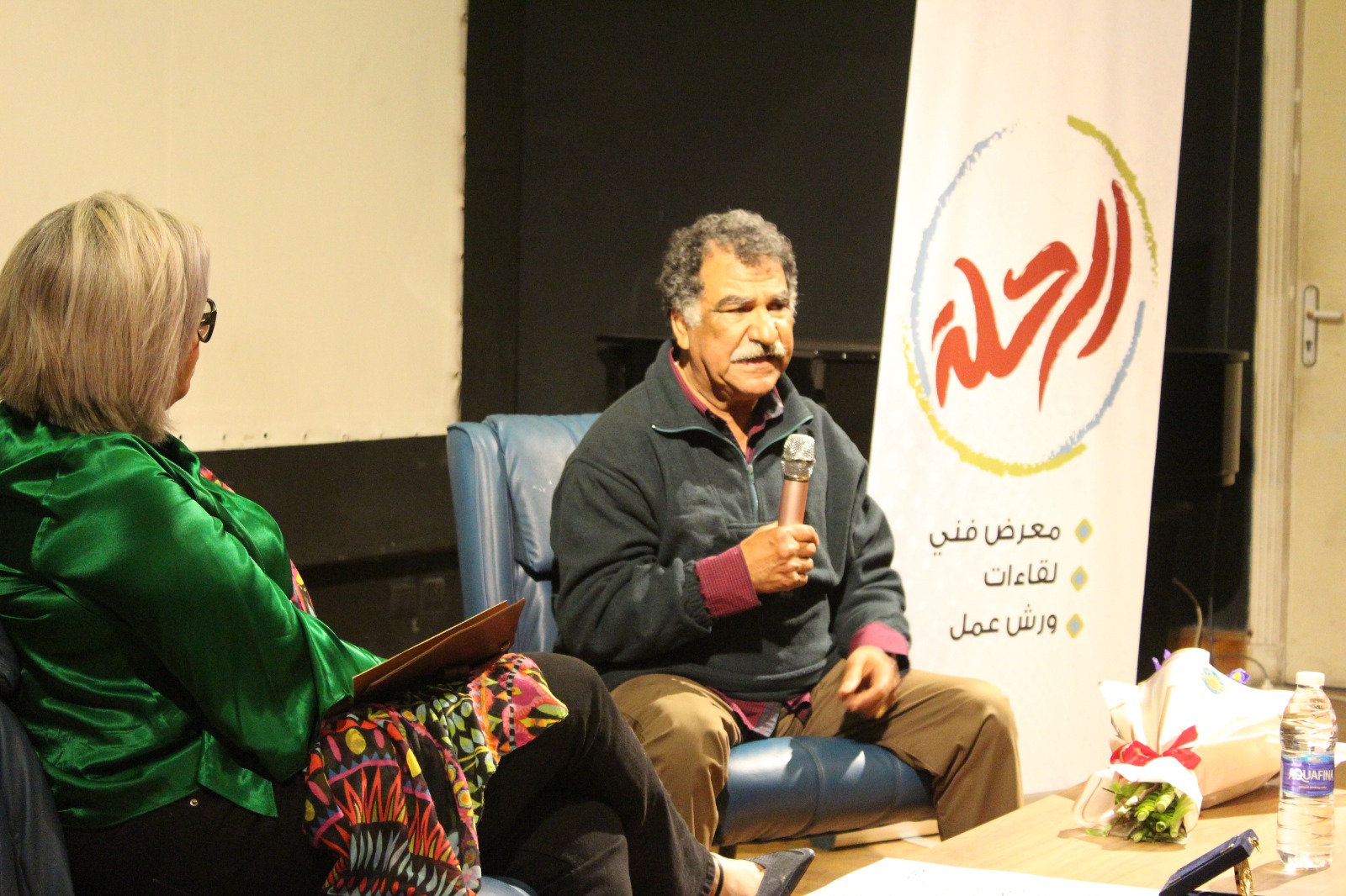 أدارت اللقاء شيماء رمزي، مدير مساحة شلتر للفنون، والتي بدأت حديثها مع “عبلة” حول الصعوبات التي واجهها في مسيرته الأولى. حينما وطأت قدمه محافظة الإسكندرية، بعد إتمام دراسته الثانوية، باحثا عن فرصة في كلية الفنون الجميلة. بعدما أصر والده أن يلتحق بالكلية الحربية، ليصبح ضابطا بالجيش. إلا أن عبلة اختار طريق الفن، وبدأ مشواره باحثا عن راعي لموهبته، فأخذ في البحث عن فنان شهير وهو “سيف وني”.