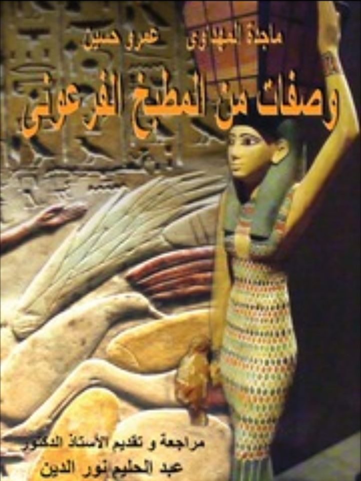 تناول كتاب «وصفات من المطبخ الفرعوني» للباحثة ماجدة المهداوي ودعمرو حسين، وراجع المادة التاريخية العالم د.عبدالحليم نور الدين، الأكلات في العصر الفرعوني، ونافس في معرض كتب الطبخ جورمو الأول في فرع تاريخ الطهي عام 2009، وفاز بالمركز الأول متفوقا على 29 دولة مشاركة.