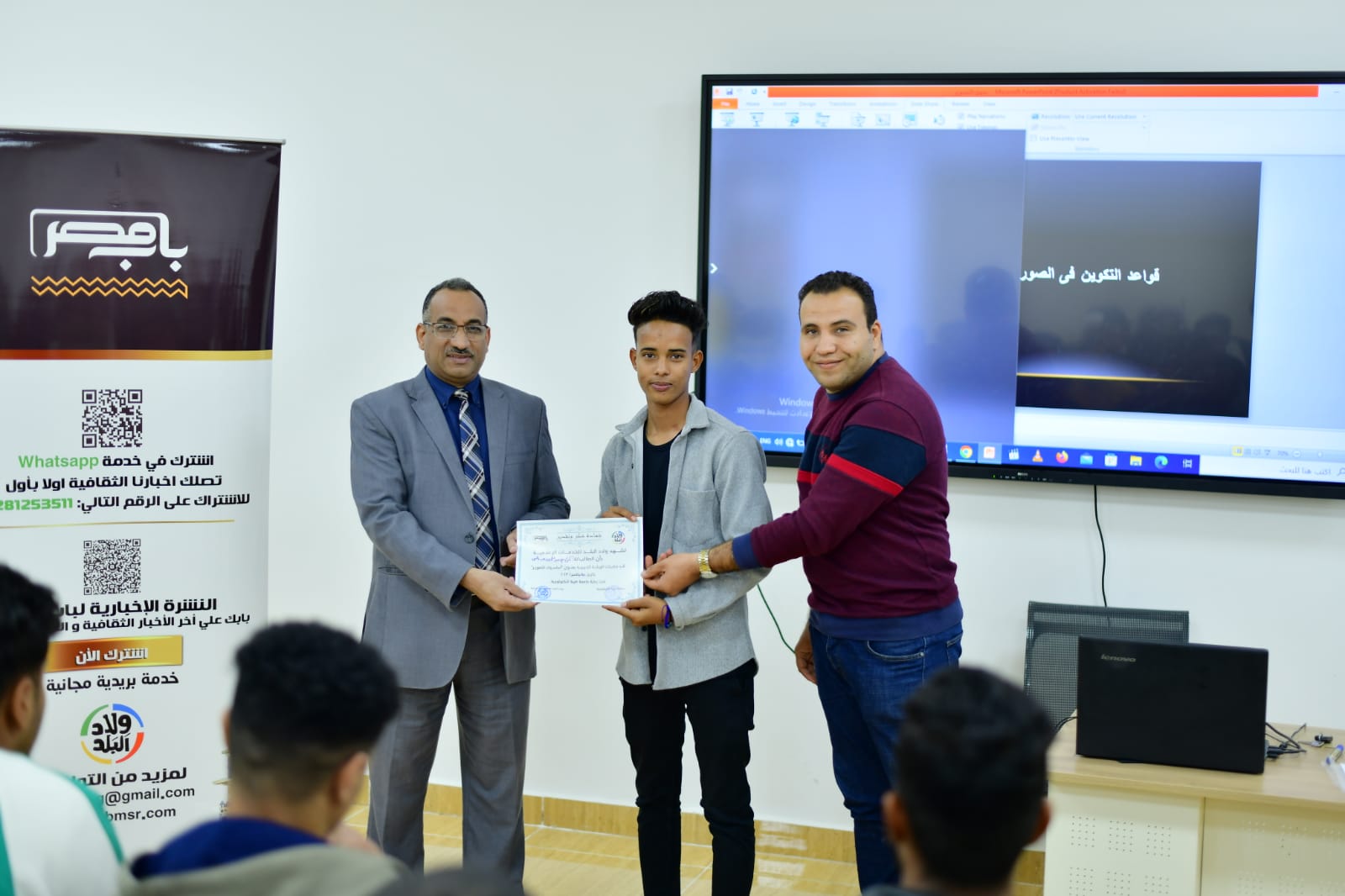 حضر الورشة التدريبية طلاب وطالبات الكليات المختلفة، للتعرف على أساسيات التصوير، باعتباره أهم منتجات المحتوى في الديجيتال ميديا. وفي الختام سلم رئيس الجامعة الشهادات للحضور.